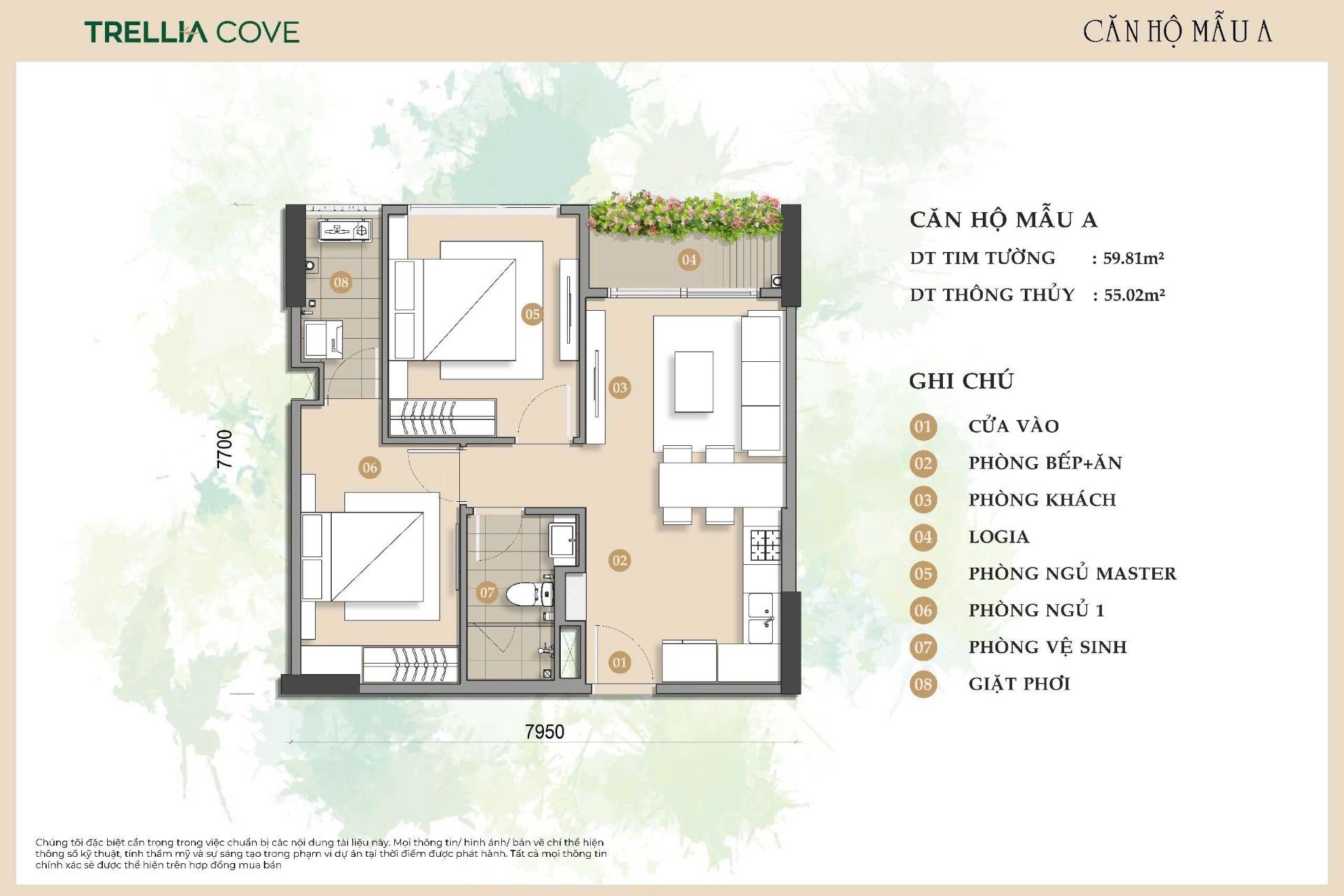 Diện tích: 59 m2