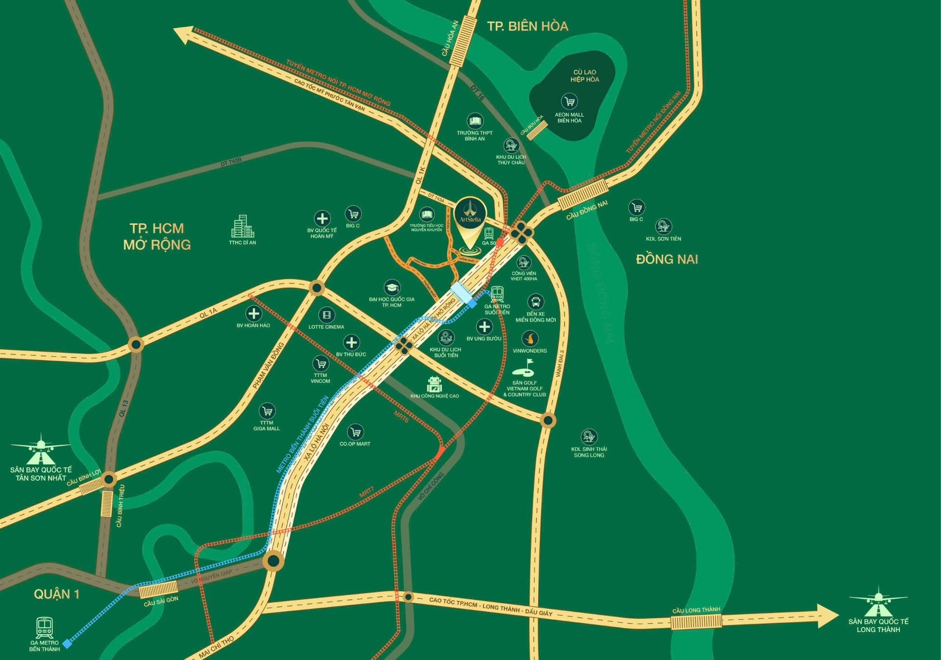 - Nằm giữa trục Xa Lộ