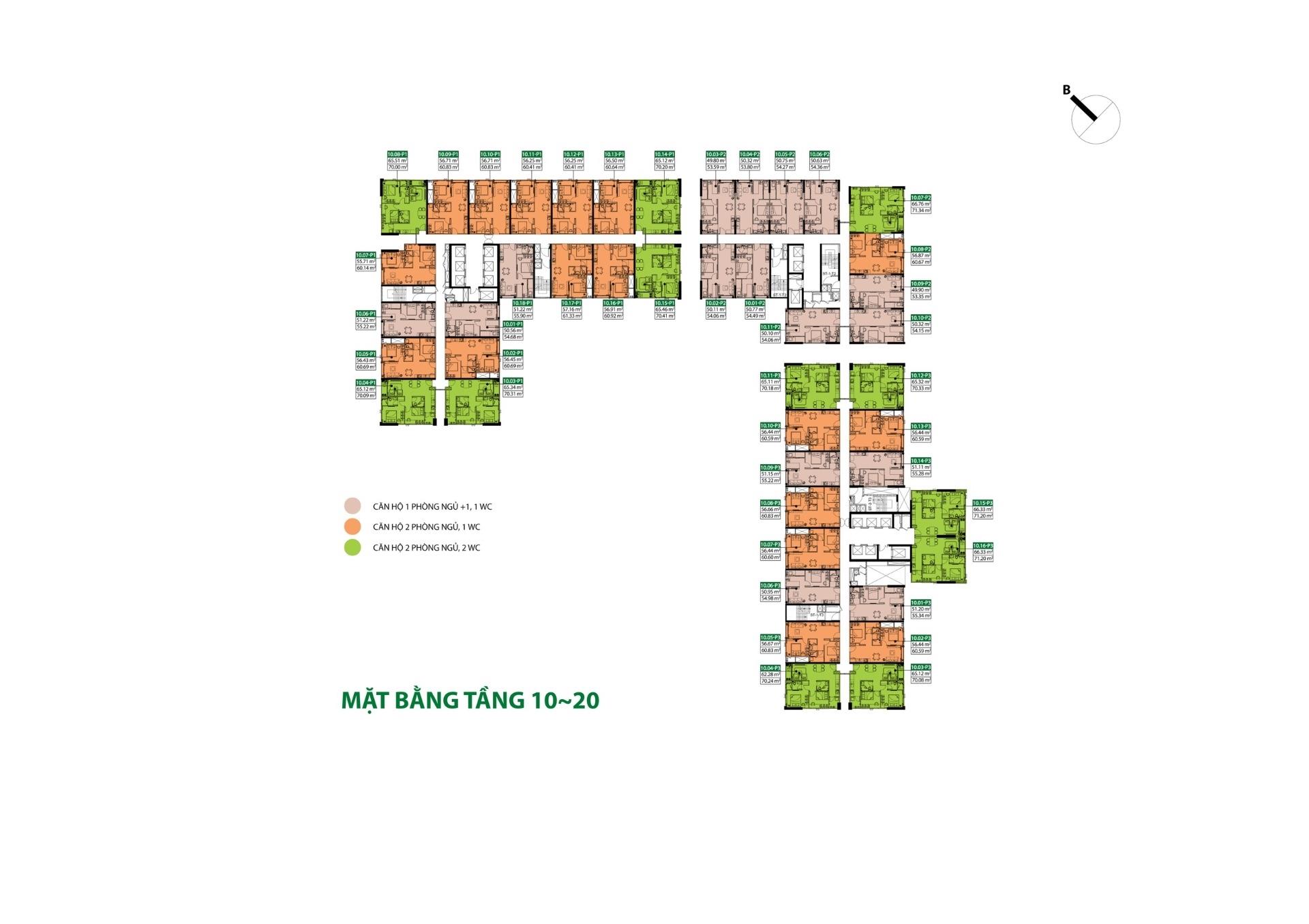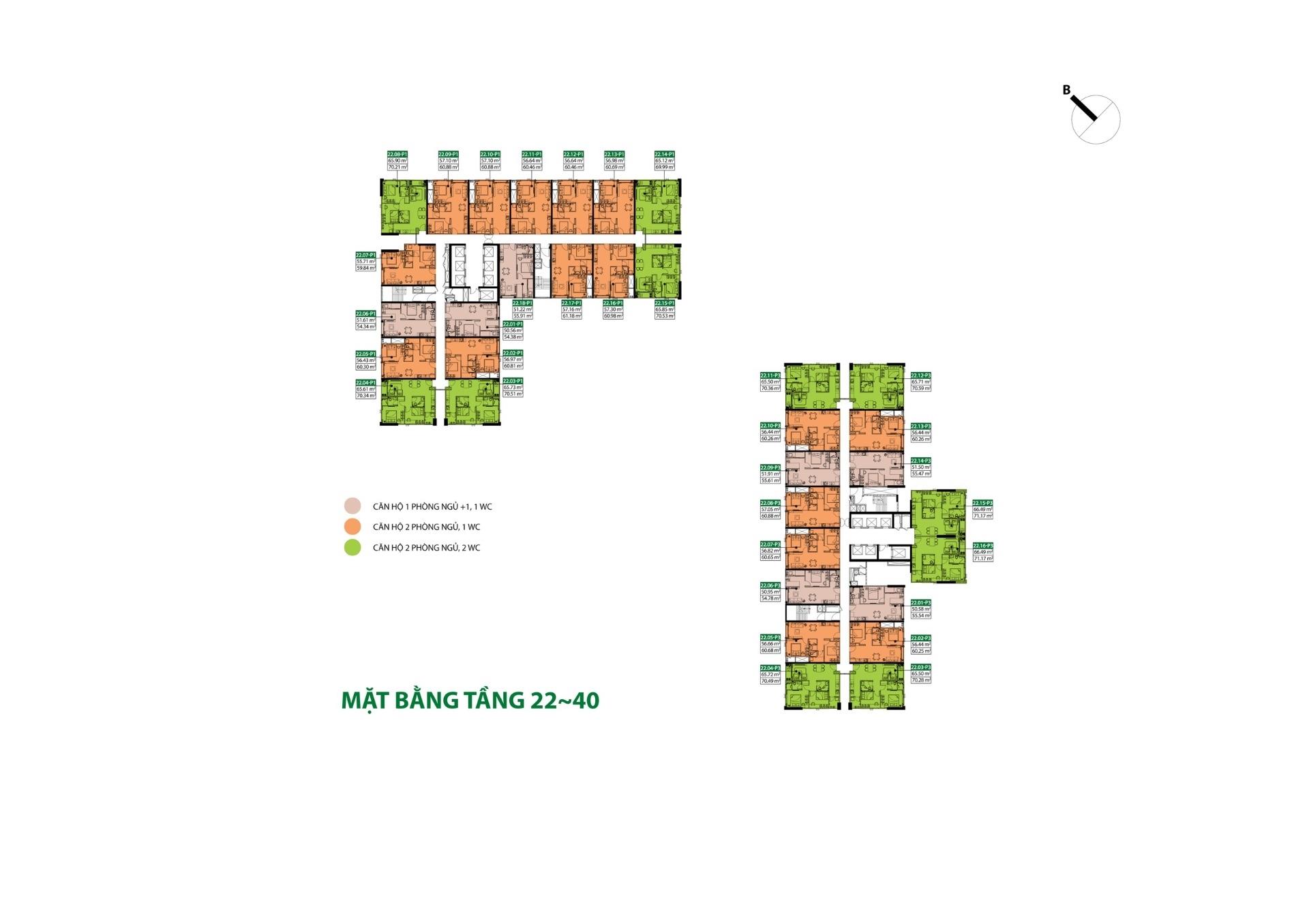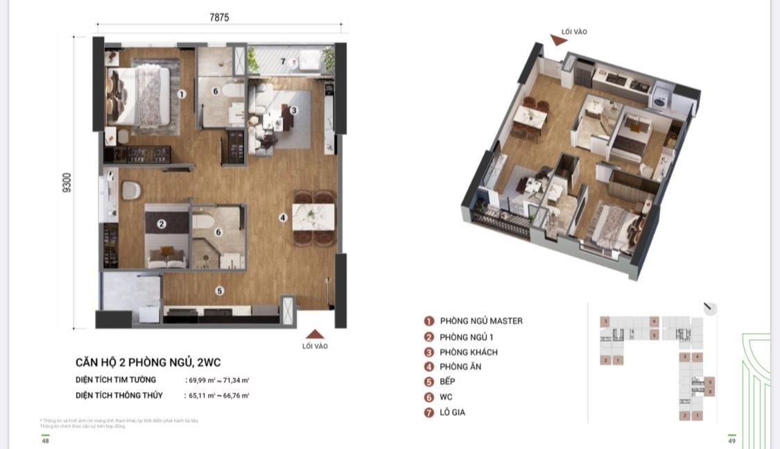 - chung cư 2 phòng ngủ - 2 toilet (71 mét vuông).