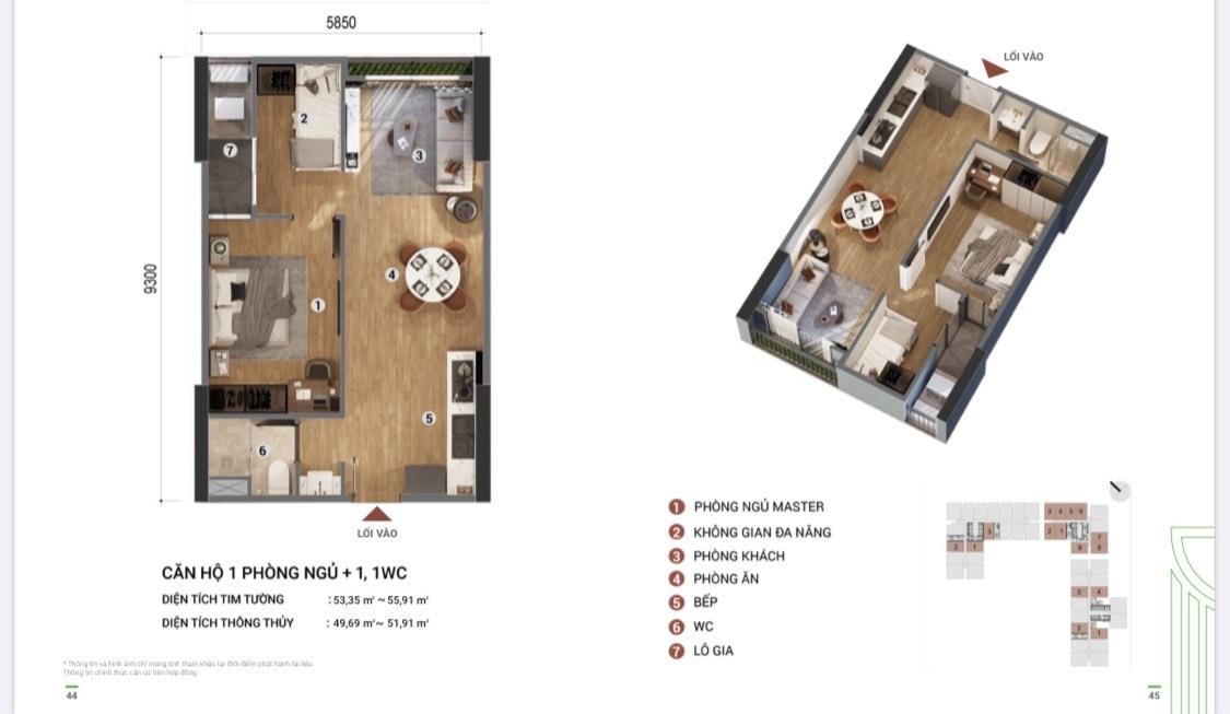 - chung cư 1 phòng ngủ + 1 - 1 toilet (56 mét vuông).