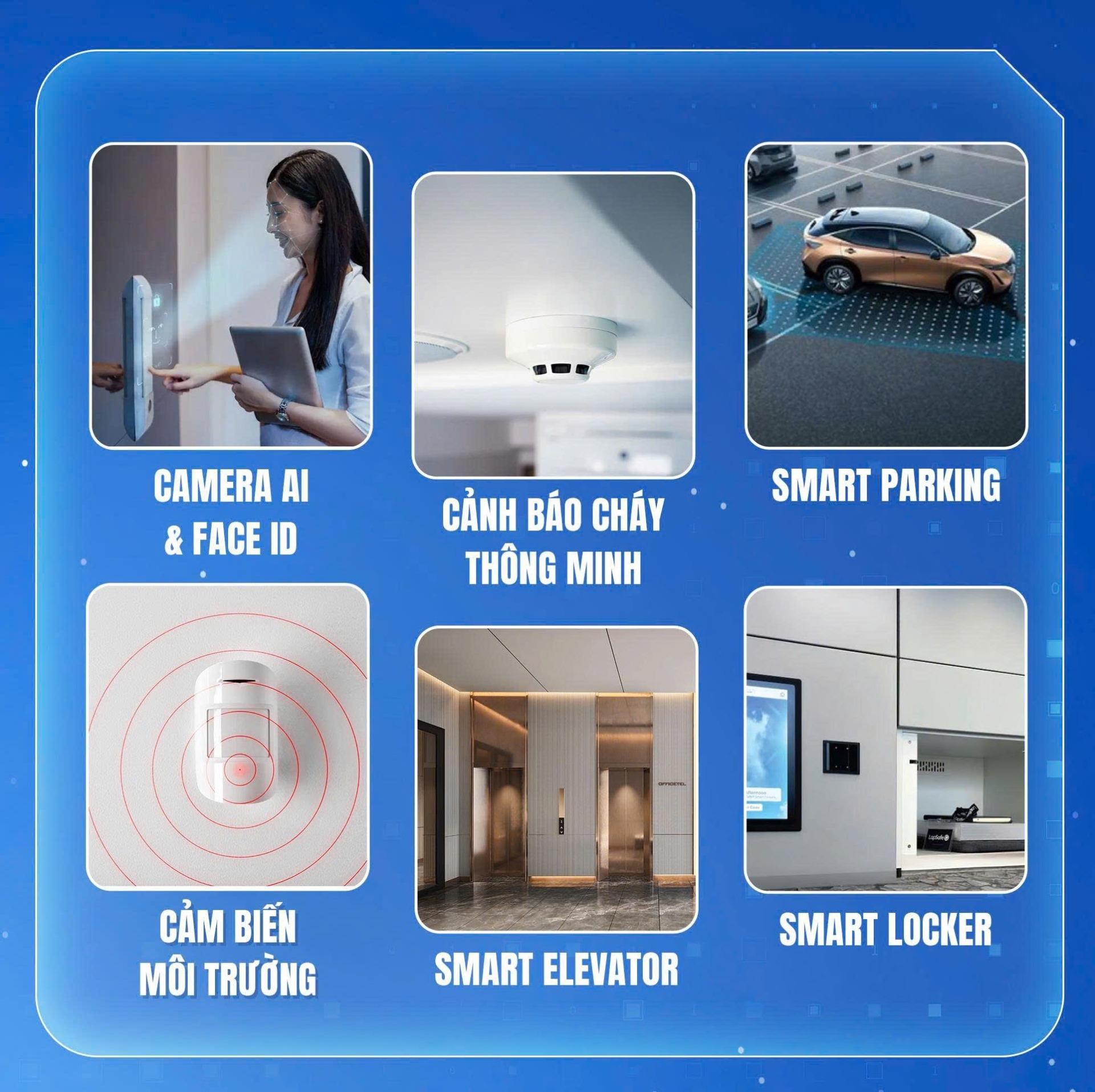 * 3 tầng tiện ích cao cấp: Đặc biệt sử dụng công nghệ thông minh như FaceID, app dân cư, điện năng lượng mặt trời, hệ thống thu gom nước mưa, hệ thống tưới tự động, hồ bơi vô cực, rạp chiếu film, fitness & yoga, thư viện điện tử,...
