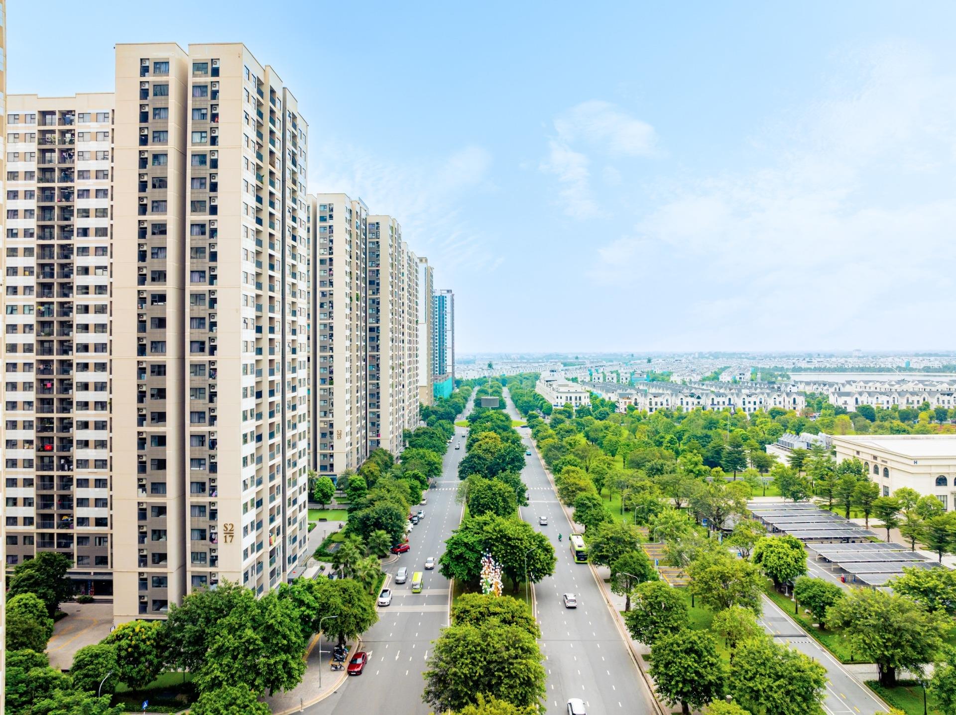 - Vị trí mặt đường nội khu 52 m 8 làn xe gần tòa văn phòng Technopark trung tâm của dự án Vin OCP 1.