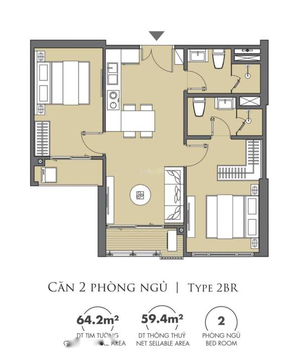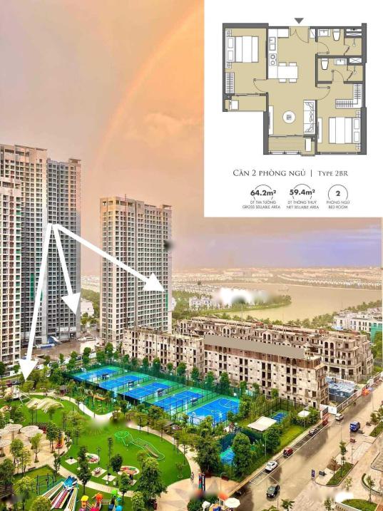 + DT: 64 mét vuông - 2 ngủ, 2 toilet, 2 logia.