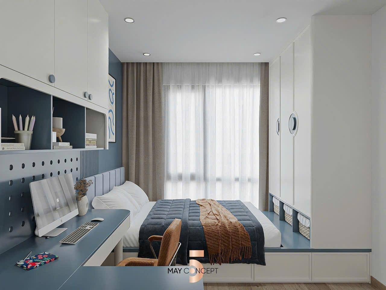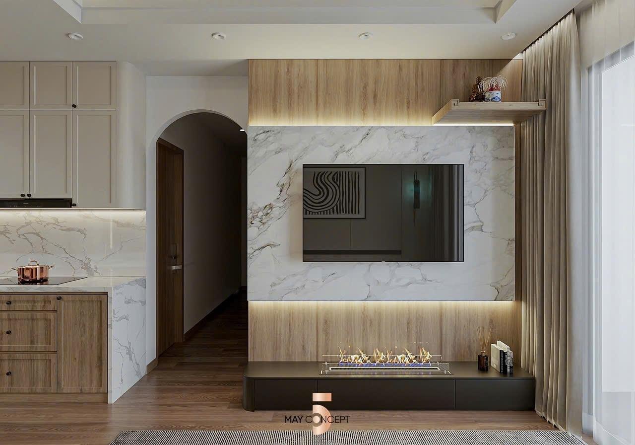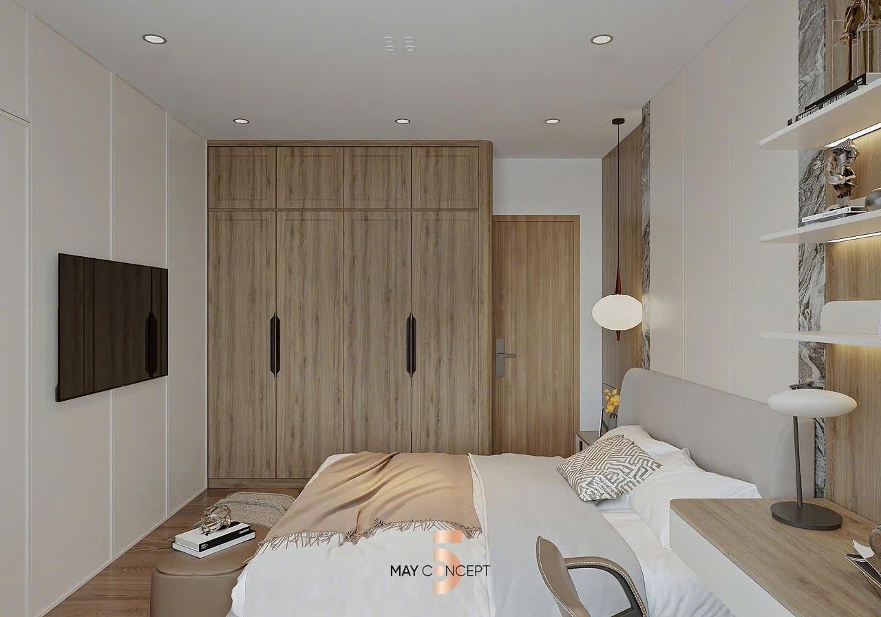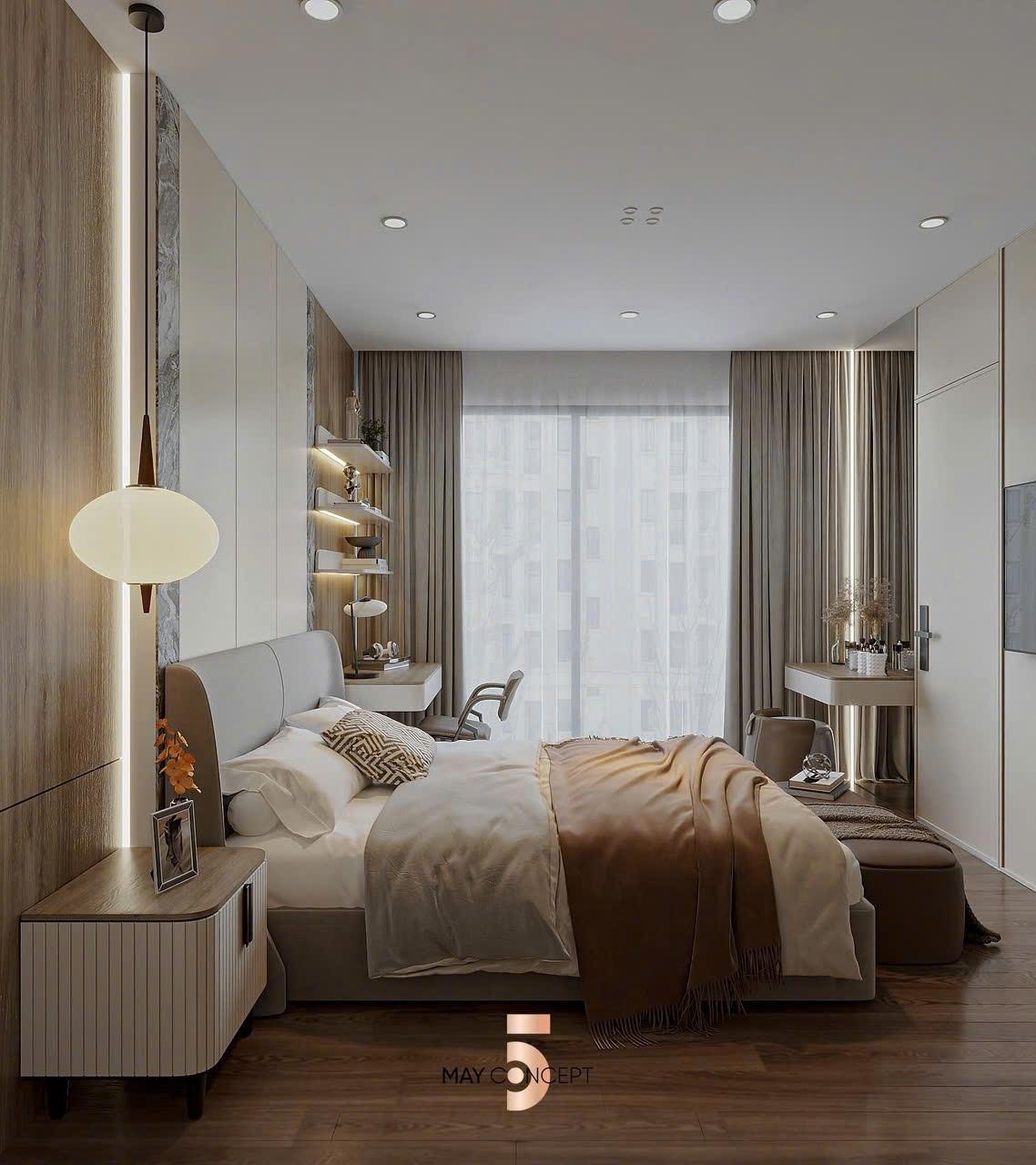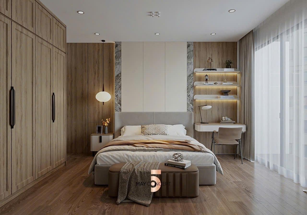 Sàn gỗ cao cấp, trần thạch cao, hệ thống chiếu sáng.