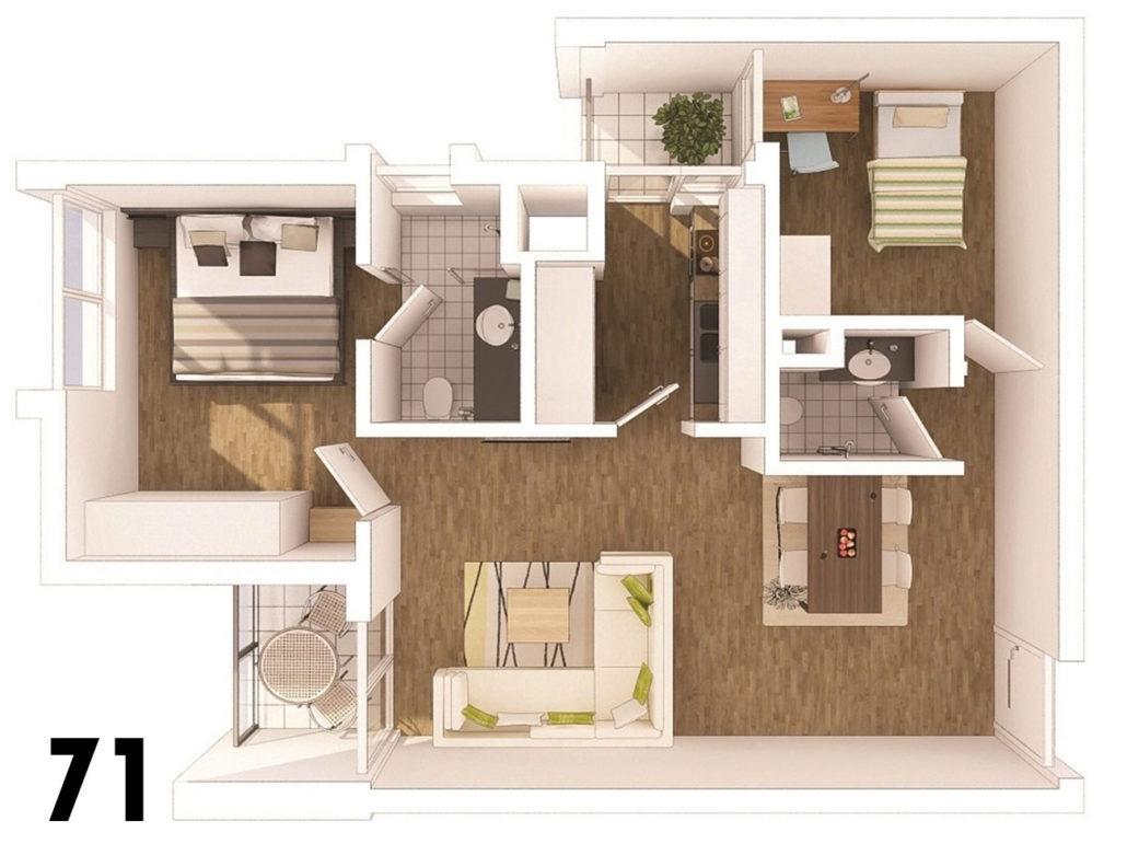 Diện tích: 71 m2