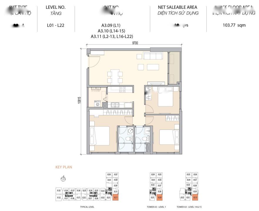 Diện tích: 103 m2