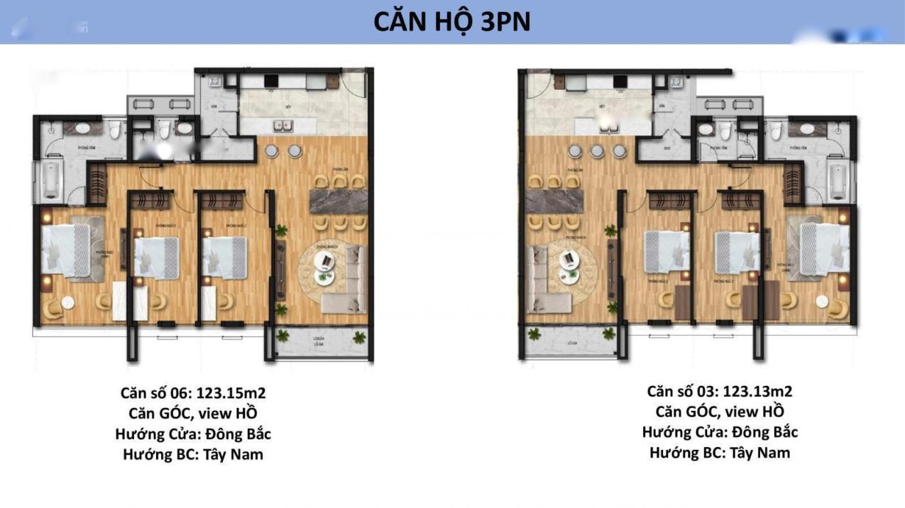 - DT 125 mét vuông, 3 phòng ngủ, view toàn cảnh hồ Thành Công.