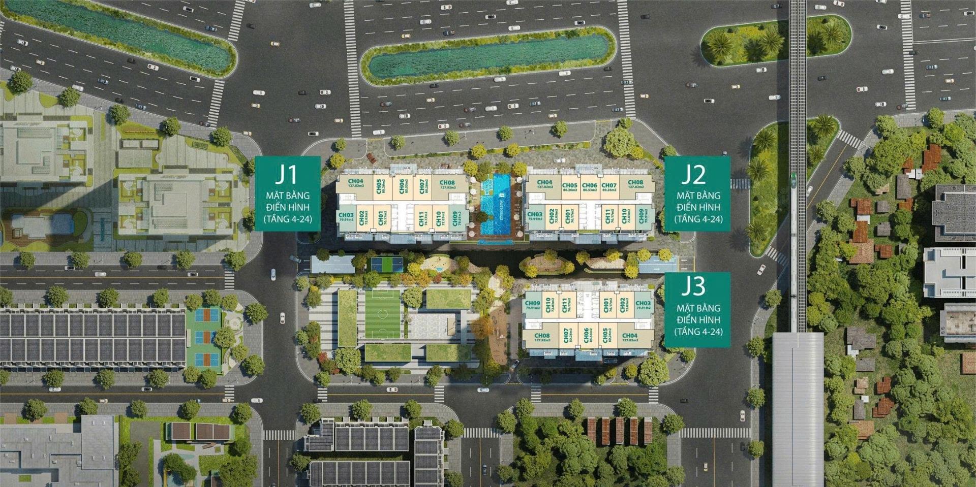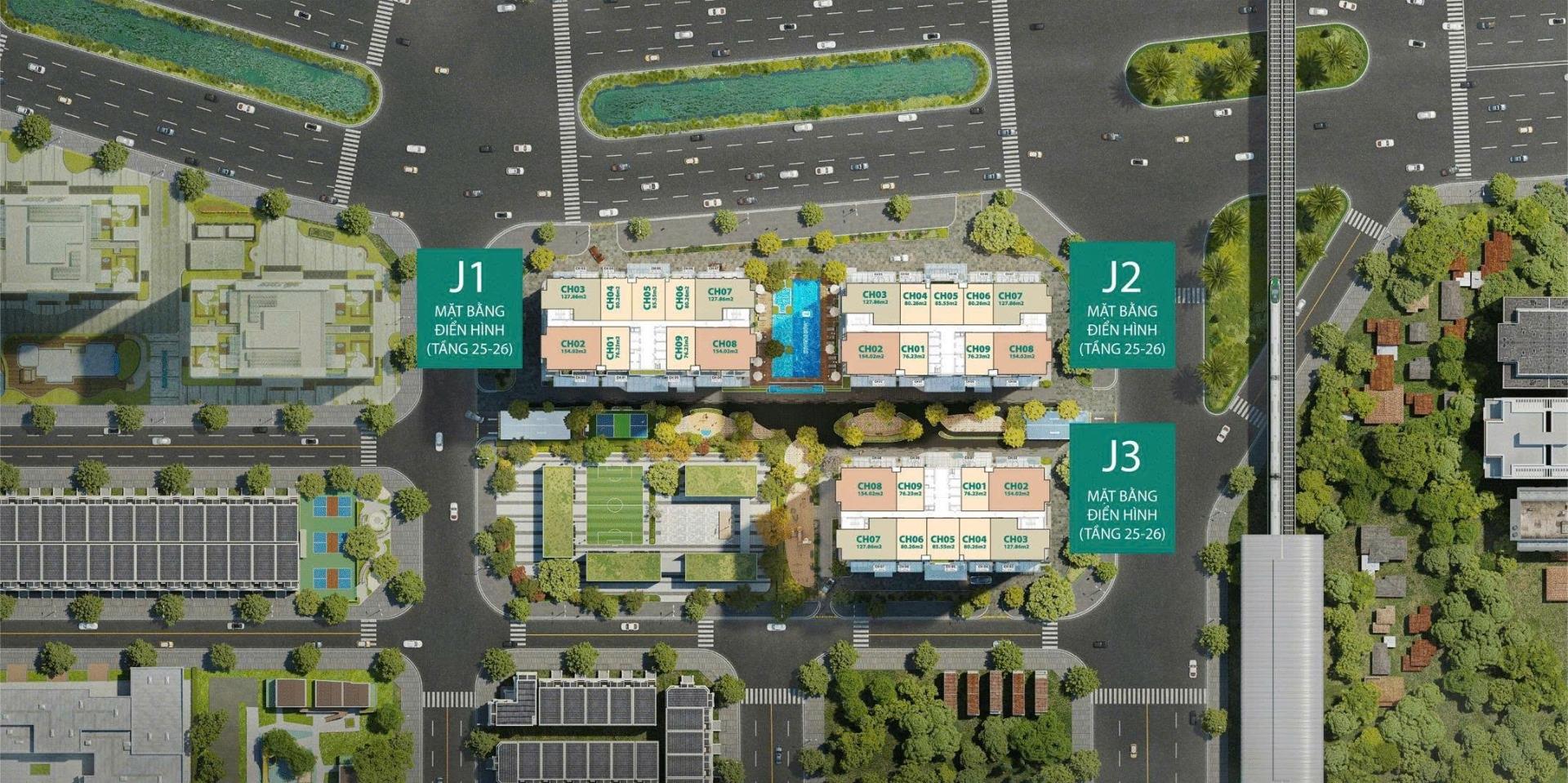 + 6.8ha gồm 5 tòa HH1,2,3 và CT1, 2 cao 26 tầng (2 tầng trung tâm thương mại, 1 tầng kỹ thuật, 3 tầng hầm); tổng 1.275 căn.
