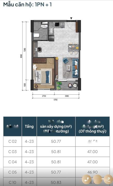 - chung cư 1 phòng ngủ + 1: 50 m: Từ 2,4 tỉ. Vốn từ 528 tr.