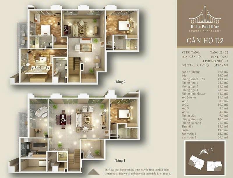 - penthouse tầng 22/23. Mỗi tòa 4 căn.