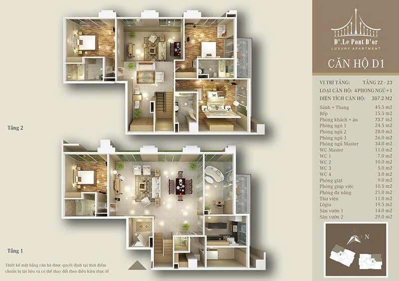 - Penthouse thiết kế dạng căn hộ thông tầng có 2 tầng.