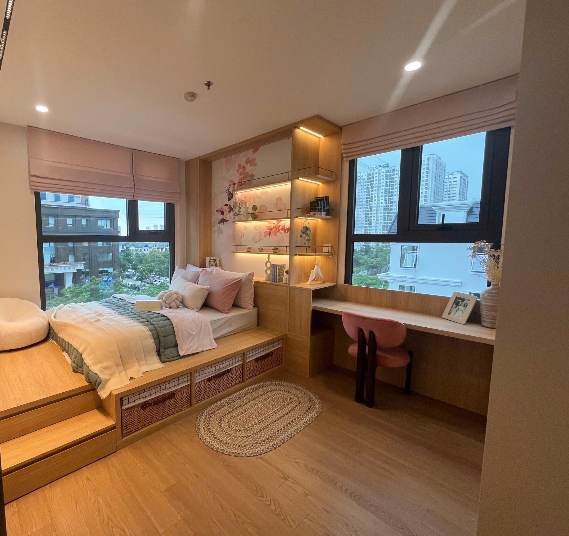 Mỗi phòng trong chung cư đều có cửa sổ lớn tiếp xúc trực tiếp với thiên nhiên, giúp không gian luôn tràn ngập ánh sáng và khí tươi. Thiết kế mở này không chỉ tiết kiệm điện năng mà còn nâng tầm trải nghiệm sống xanh, khoáng đạt.