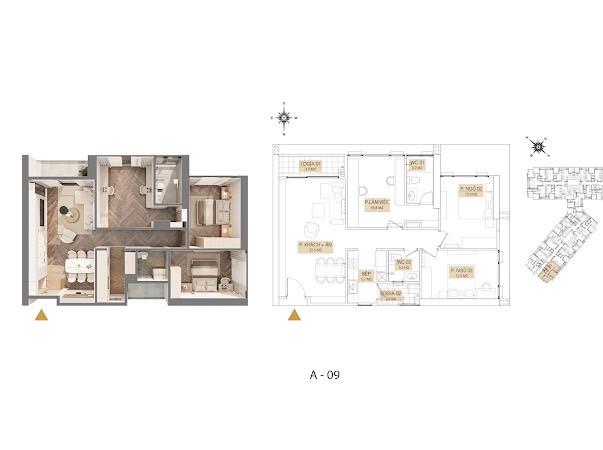 - - Căn 2 ngủ: 61-67-82m2