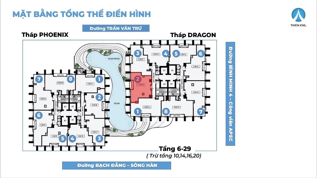 Vị trí trung tâm tháp Dragon, thiết kế vuông vắn – riêng tư – tối ưu không gian sống.