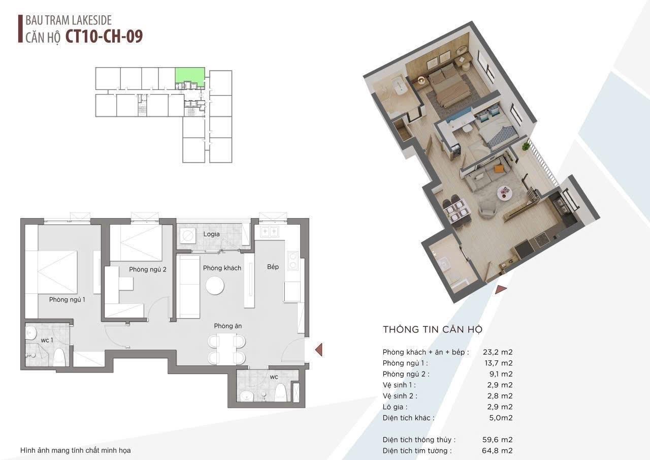 Diện tích: 59,599998474121094 m2