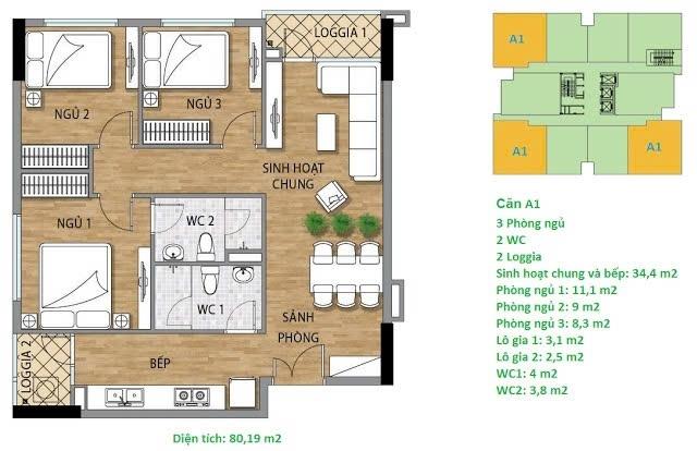 Diện tích: 79 m2