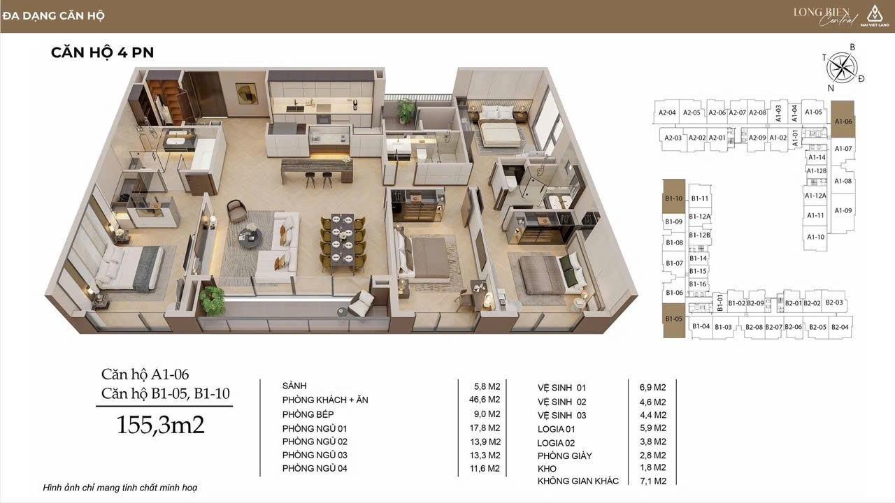 * Quỹ căn đa dạng: 1 phòng ngủ, 2 phòng ngủ, 3 phòng ngủ, 4 phòng ngủ, Penthouse.