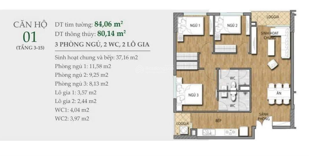 Diện tích: 80 m2
