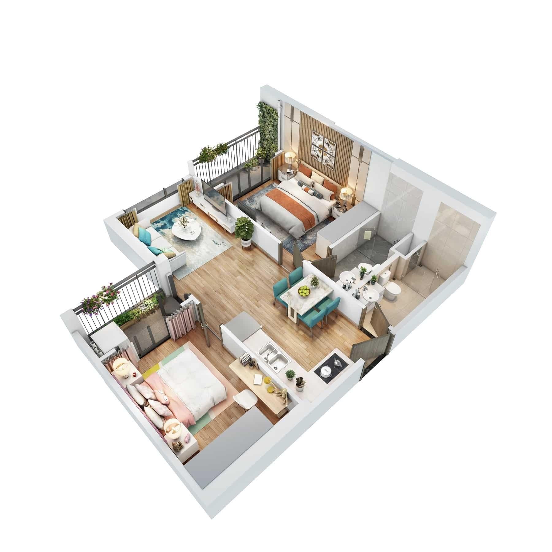 Diện tích: 54 m2