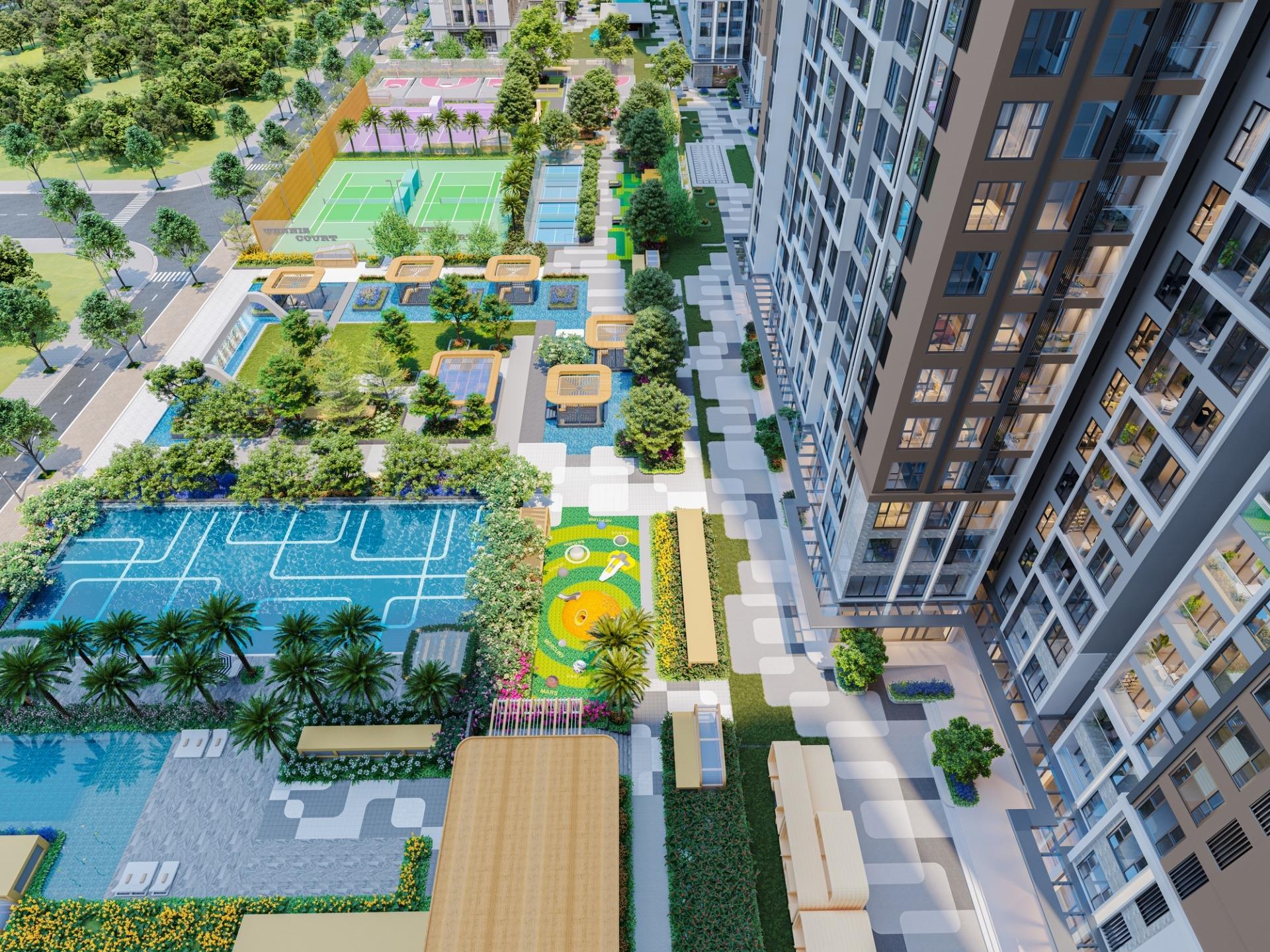 + Nội khu rộng và đẳng cấp nhất Smart City: hồ bơi, loudge chìm, khu yoga tường nước…
