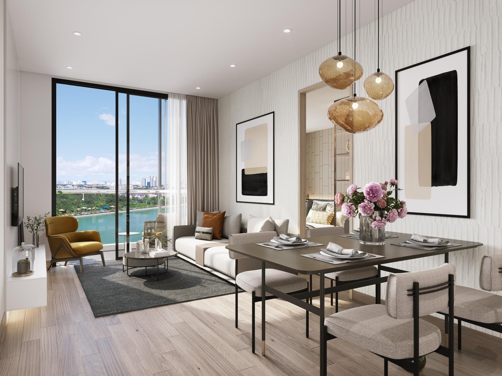 căn hộ chung cư (đã bàn giao) 2 ngủ 2 phòng vệ sinh rộng 64 mét vuông thông thủy, logia hướng Đông Nam, ~ tầng trên 20 nội thất xịn xò: