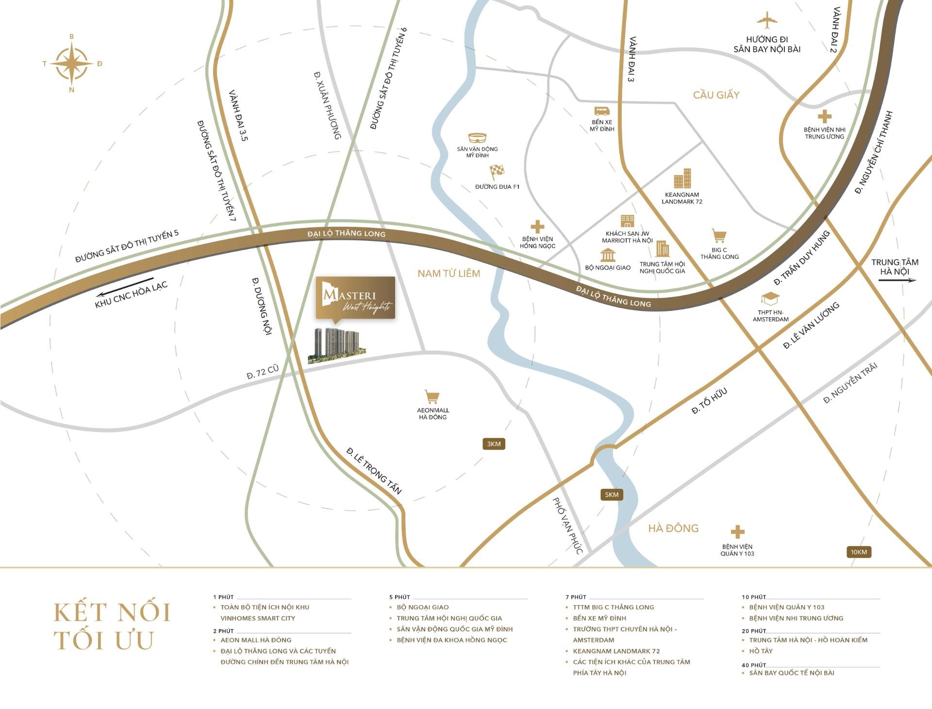 Ngoài ra, Masteri West Heights Tây Mỗ còn nằm gần các tuyến metro số 5, 6, 7 cắt ngang KĐT vin Smart City. Tại các quốc gia phát triển, những dự án BĐS nằm gần metro luôn đc định giá cao hơn rất nhiều so với những dự án cách xa metro. Masteri West Heights nói riêng và căn hộ chung cư vin Smart City nói chung với lợi thế nằm gần cả 3 tuyến metro trong tương lai tiềm năng tăng giá và cho thuê đc giới chuyên gia đánh giá vô cùng cao.