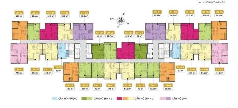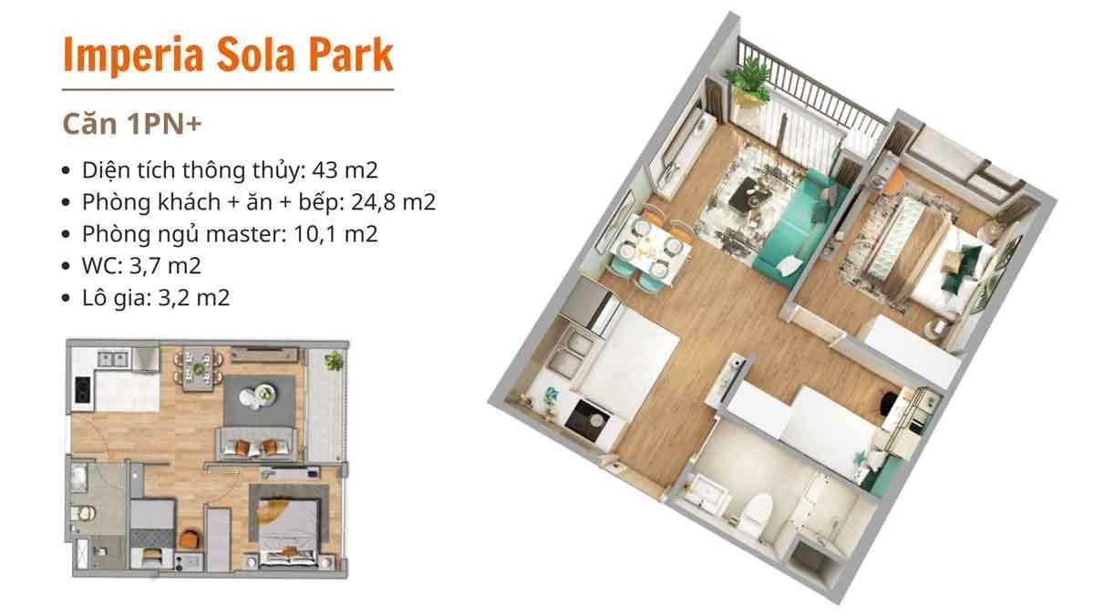 Diện tích: 43 m2