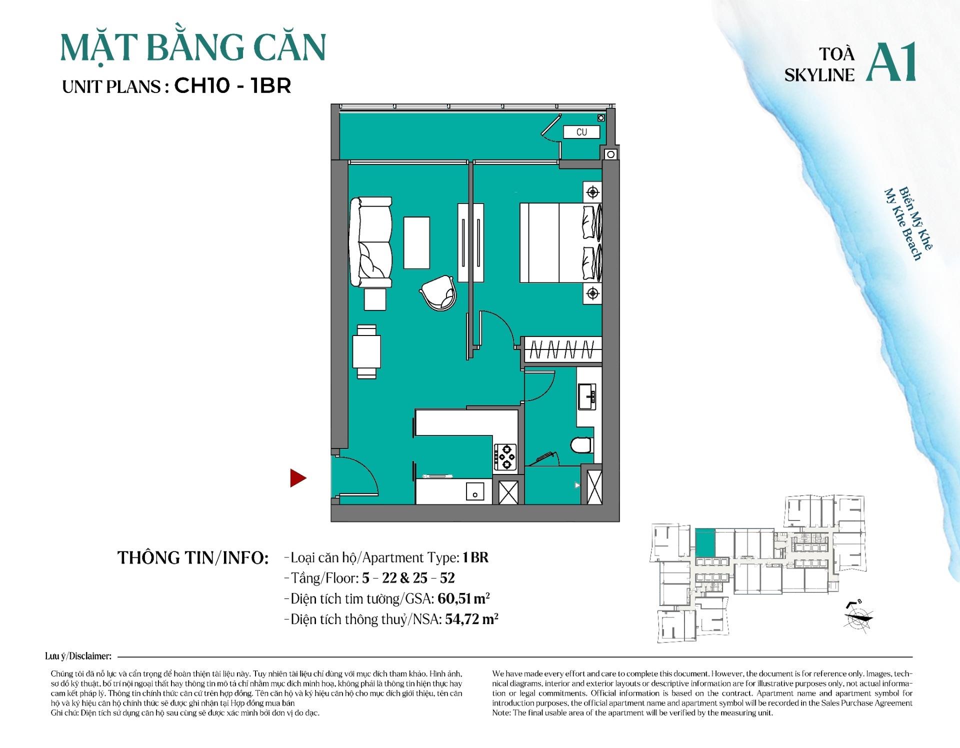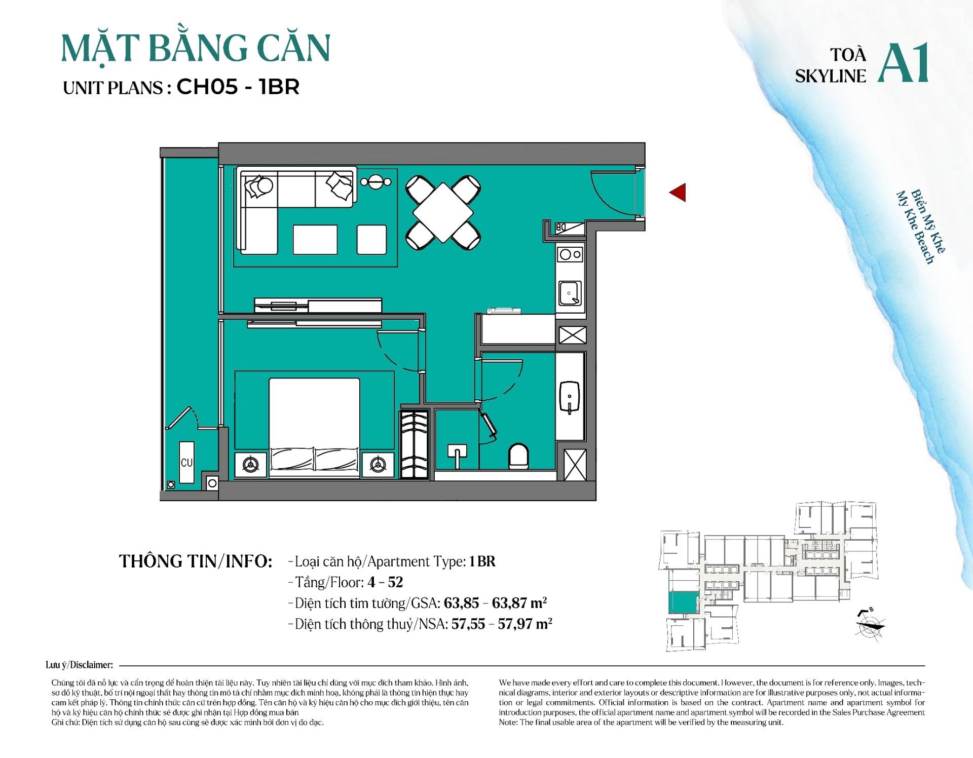 chung cư 1 phòng ngủ The Soleil Đà Nẵng đc thiết kế thông minh, tách biệt giữa không gian sinh xã hội hoạt và nghỉ ngơi, mang đến cảm giác riêng tư – sang trọng – tiện nghi.