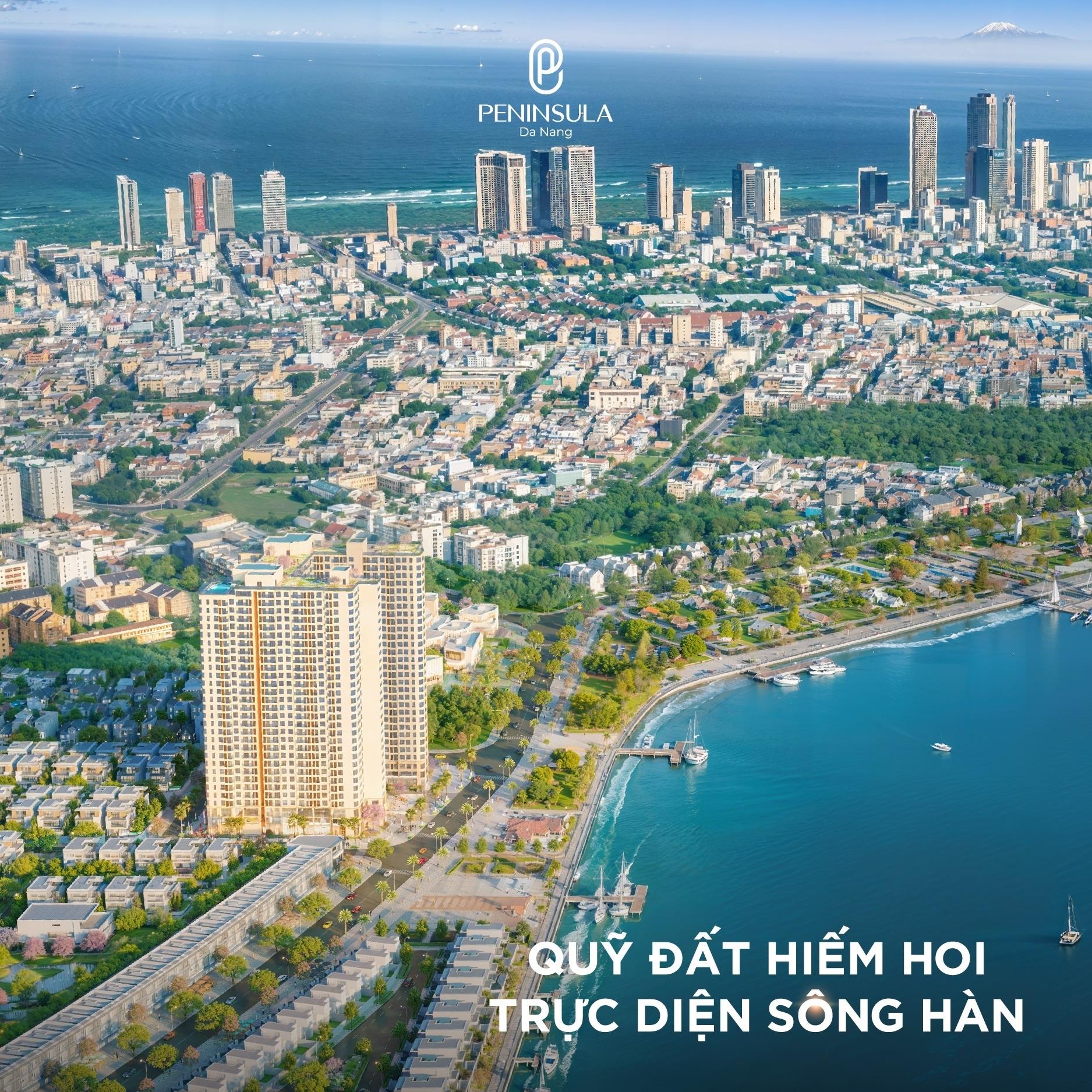 - Về tầm view: Peninsula là dự án có 4 MT, nằm trực diện sông Hàn, view ngắm sông Hàn, ngắm Pháo hoa, ngắm vịnh biển Đà Nẵng.