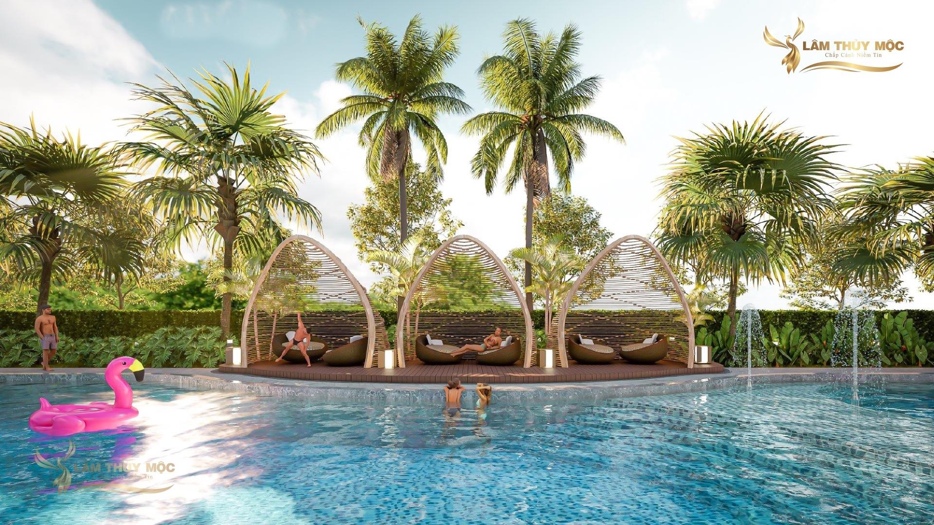 - Công viên trung tâm rộng 2.200m², hồ bơi 1.800m², mặt nước trải dài 550m