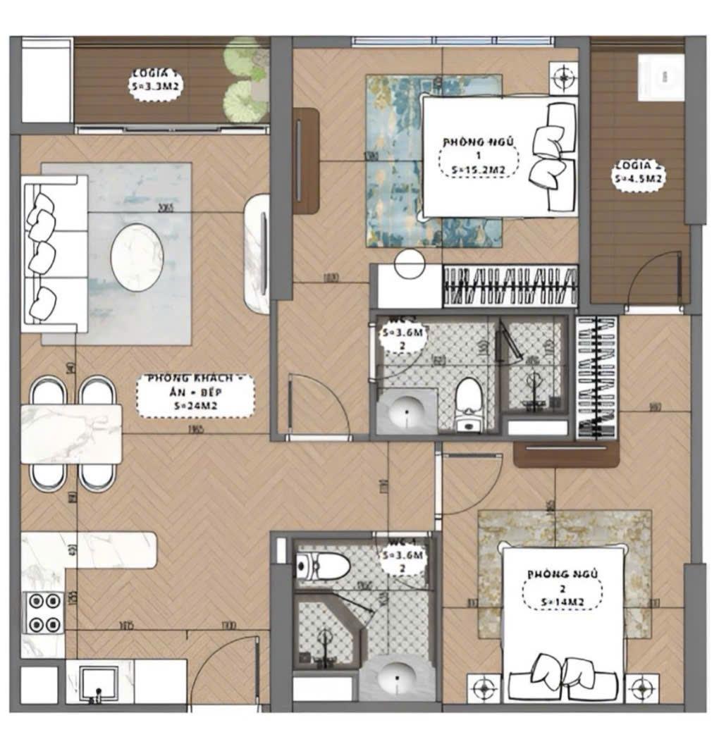 phòng ngủ | 1 toilet | 1 bếp | Phòng khách + ban công rộng thoáng - Bàn giao thô: tường trát phẳng, hệ thống