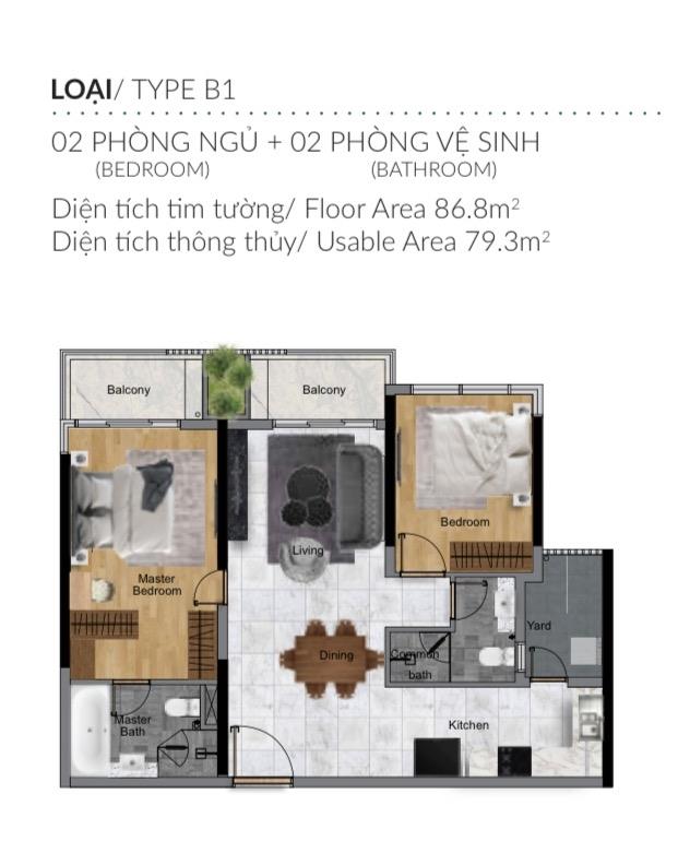 - chung cư có thiết kế 2 phòng ngủ - 2 nhà vệ sinh - có đến 3 bancol, bacol phòng khách và phòng ngủ liền nhau rất rộng và cực chill thoải mái thiết kế không gian sống hoàn hảo.