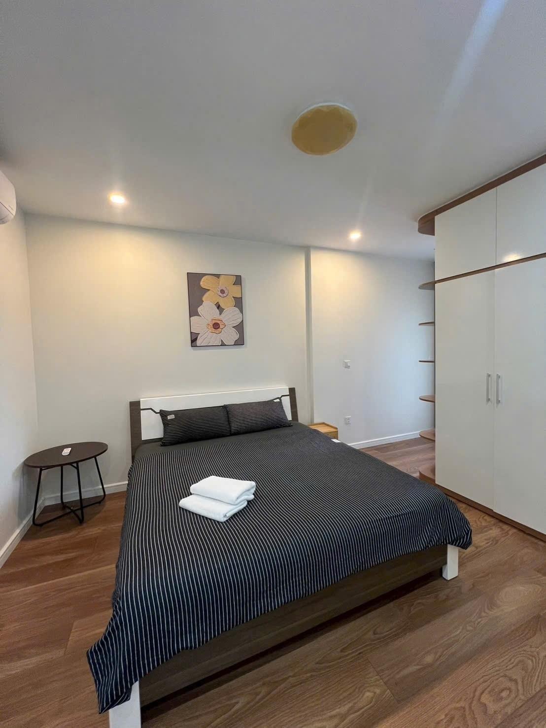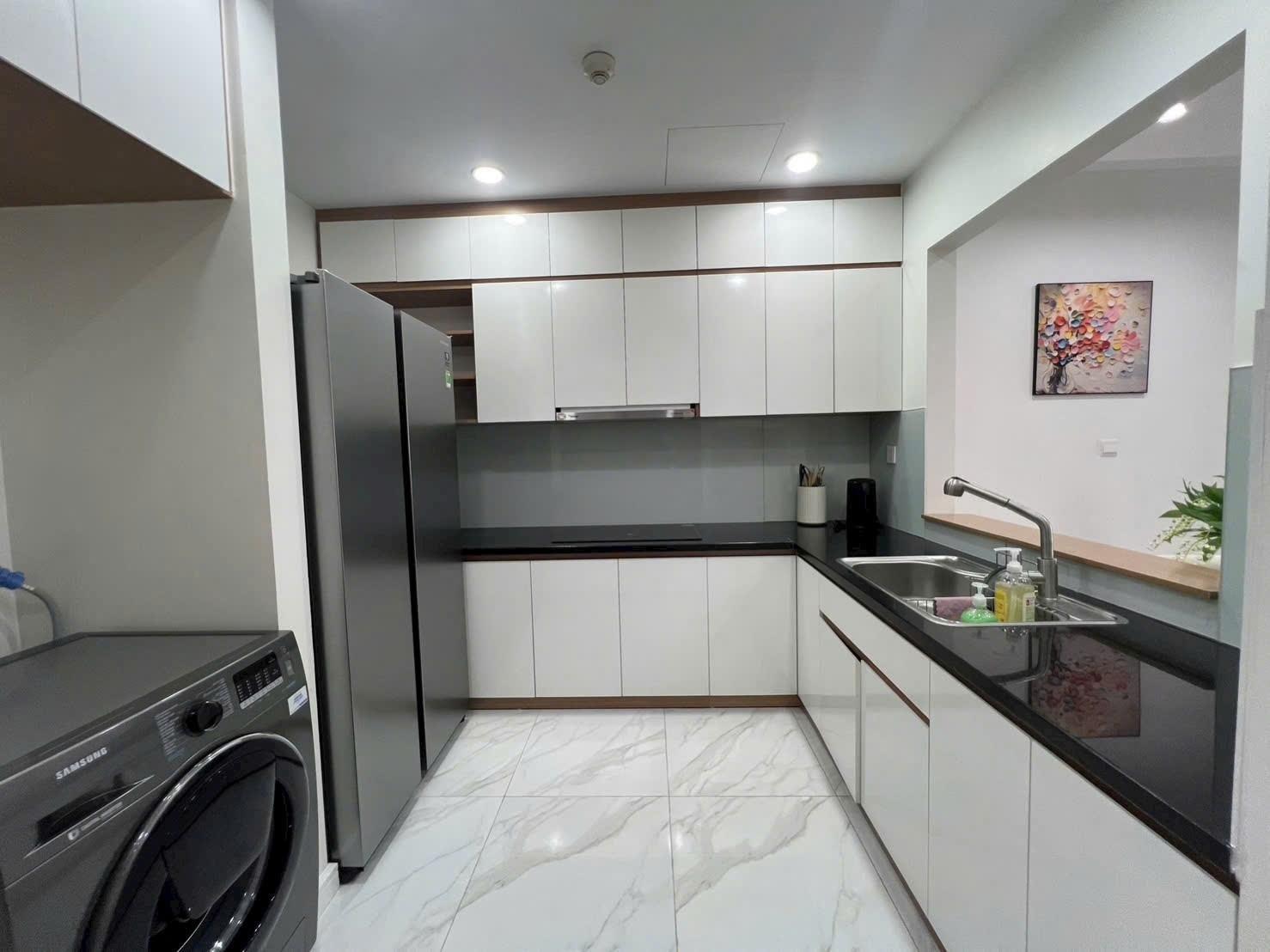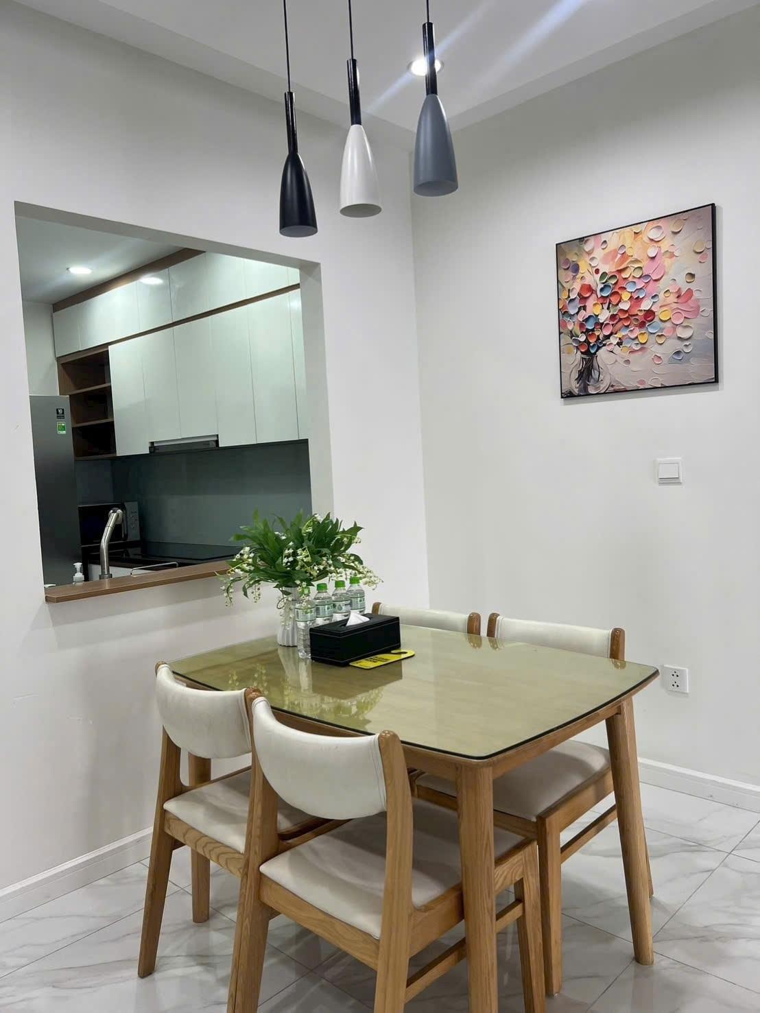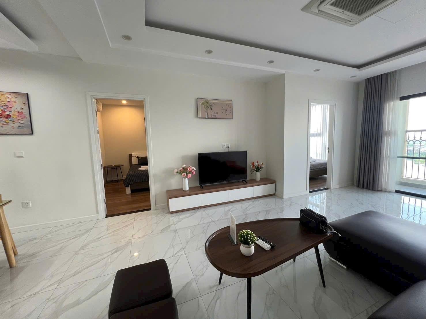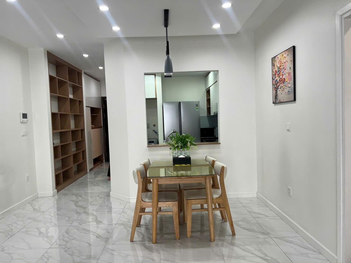 căn hộ chung cư đc trang bị full nội thất, bao gồm điều hòa, tủ lạnh, giường ngủ... với phong thủy tốt, cửa chính Tây Bắc và logia Đông Bắc, hướng Đông Nam, mang lại không khí trong lành và ánh sáng tự nhiên.