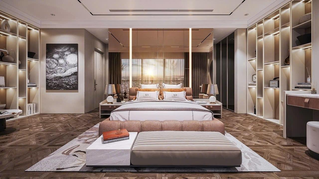 - Sự riêng tư: PN master tại tầng 2 rộng gần 30 mét vuông, đảm bảo không gian nghỉ ngơi tách biệt hoàn toàn với khu vực ngoại giao.