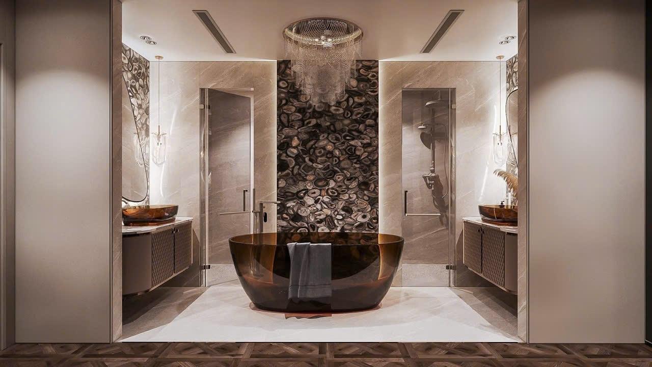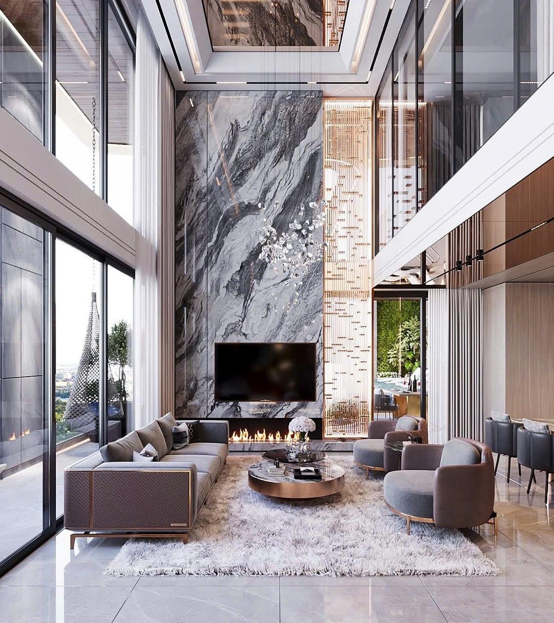 - Thiết kế: 5 PN, 5 phòng vệ sinh, phòng khách thông tầng Panorama.