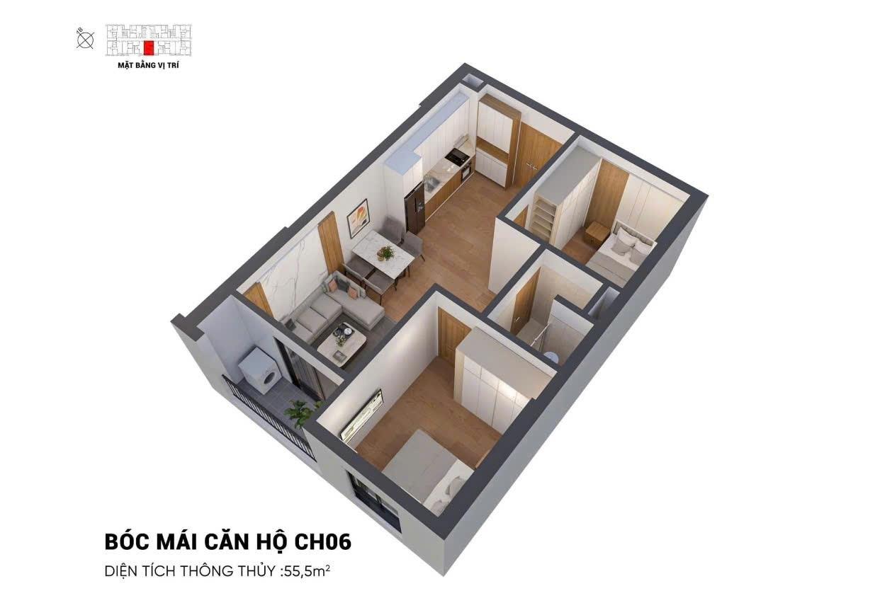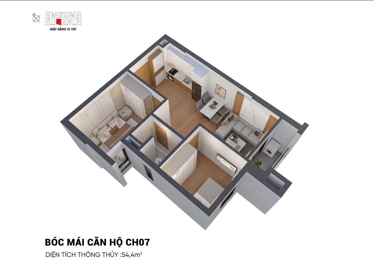 DT phù hợp : - 2 phòng ngủ - 53-54-57-61-65m²