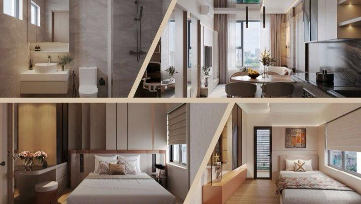 ✅ Không gian cho cả gia đình: 2 phòng ngủ riêng tư, 2 WC tiện lợi cùng khu vực phòng khách và bếp liên thông, tạo không gian sinh xã hội hoạt chung ấm cúng.