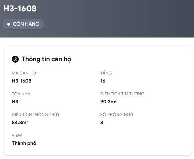 ✨ Thông tin căn H3-1608