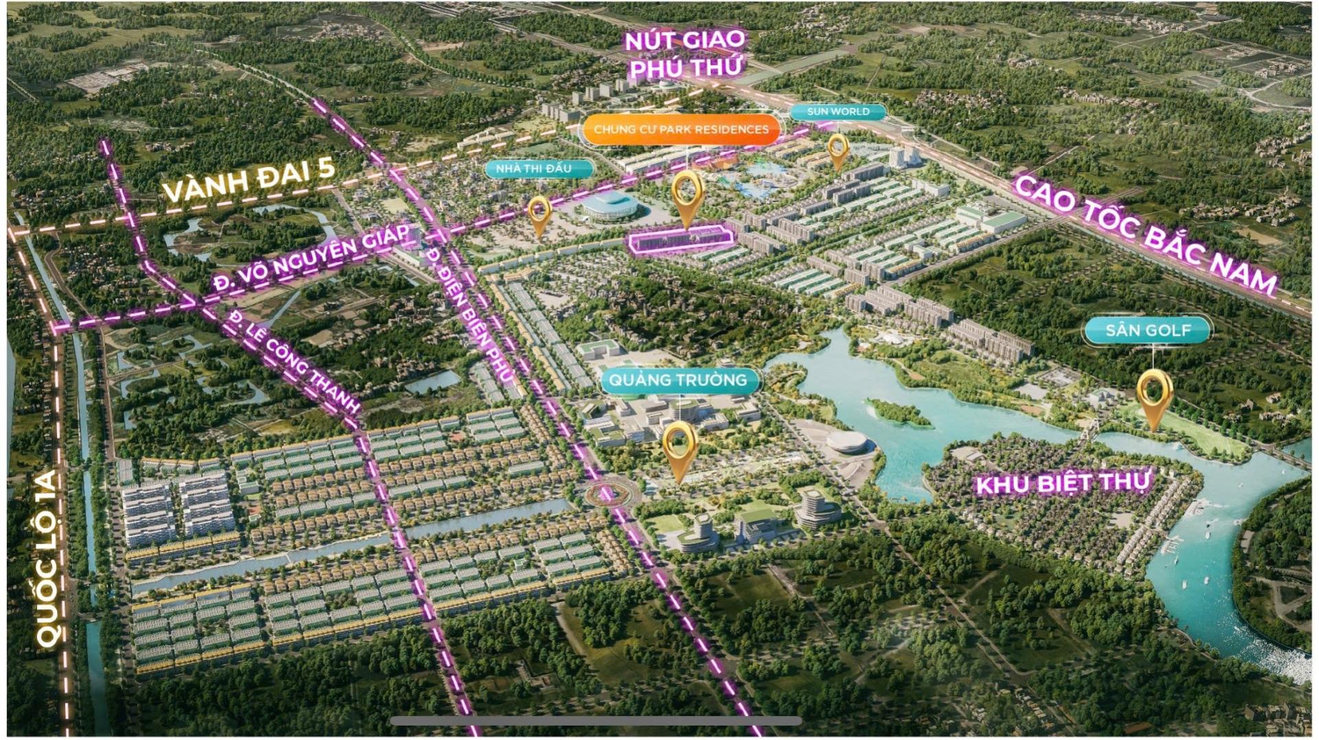 + Bao quanh bởi hệ thống công viên quy mô lớn bậc nhất: Công viên nước Sun World, Công viên sinh thái, Công viên thể thao