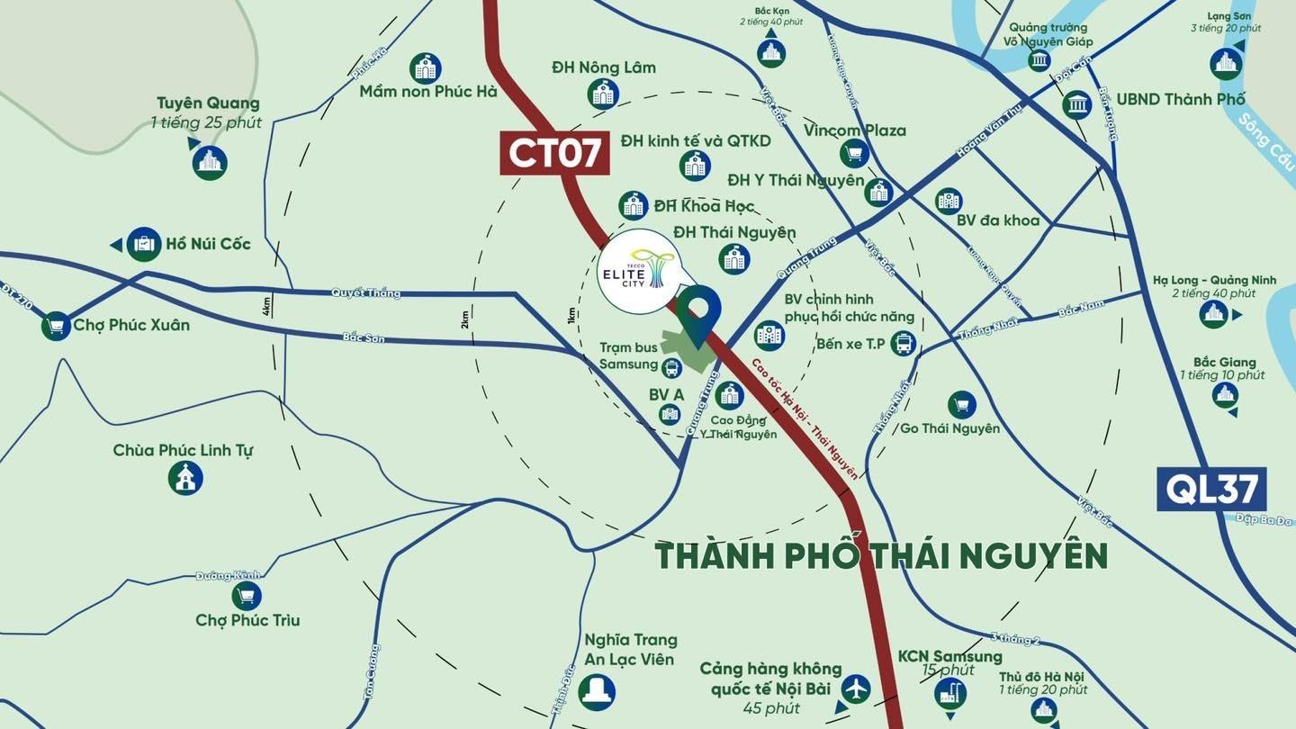- Vị trí: Đường Quang Trung, P. Thịnh Đán, Thái Nguyên. Ngay cạnh cao tốc HN - Thái Nguyên, gần các trường đại học, kết nối các khu công nghiệp, BV