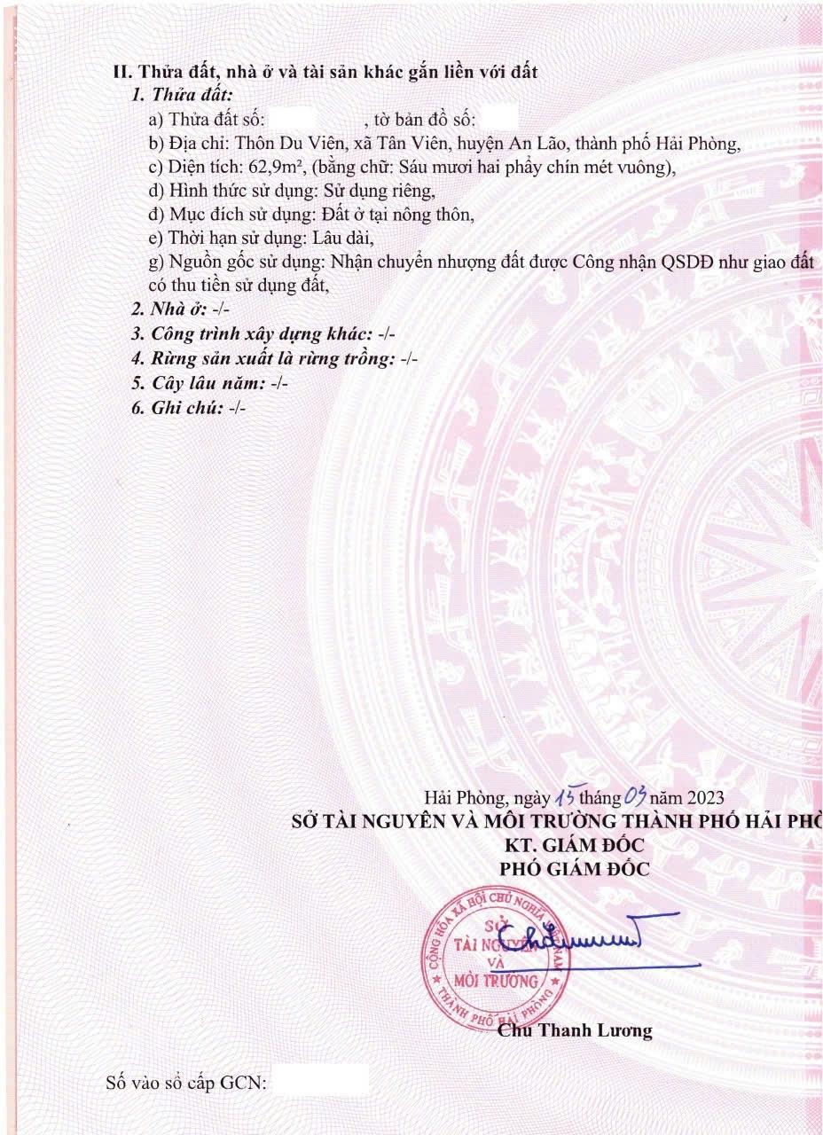Đất bán tại thôn Du Viên, xã Tân Viên gần đường 362/ đường 302, gần