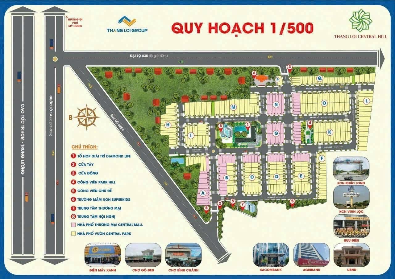 Bán đất nền Khu dân cư Thắng Lợi Central Hill (TLCH), đất nền phước lợi, bến lức, tại đường ĐT835 - ĐT835C, xã Phước Lợi, Bến Lức, Long An – vị trí trung tâm đi về SG chỉ 25p, đất thổ cư gần chợ Gò Đen, dân cư hiện hữu, sầm uất.