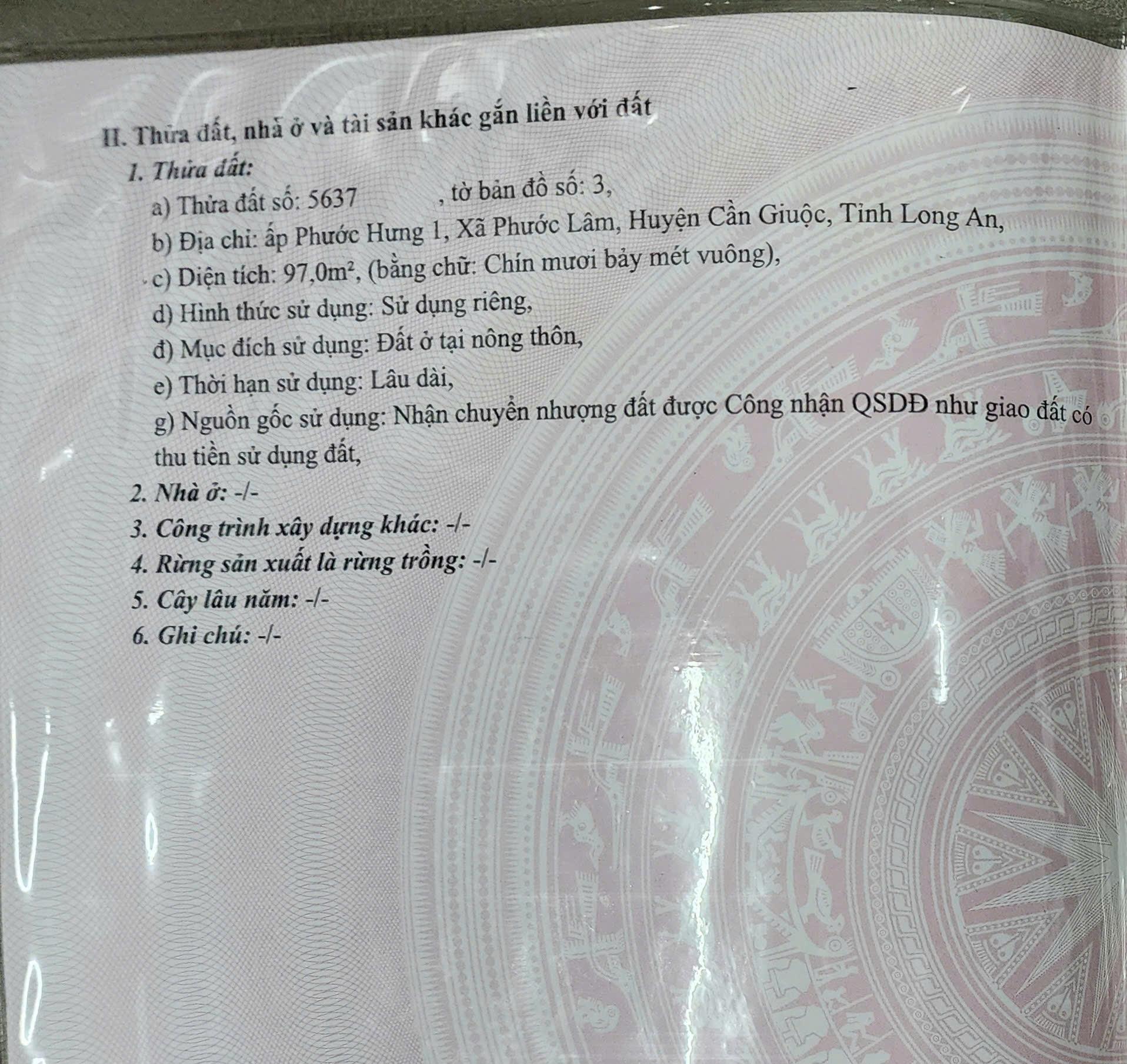 CHÍNH CHỦ BÁN nền thổ cư 97 mét vuông SHR - Cần Giuộc, Tây Ninh (Long An) - Cách TPTp HCM 20p đi xe