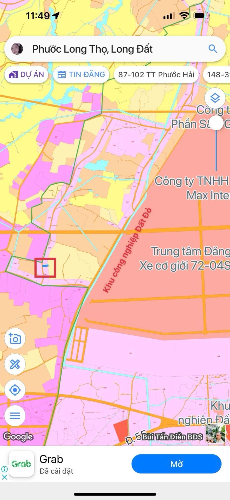 Đất MT đường nhựa KDC đông. Khu vực nhiều nhà trọ, hàng quán, cơ sở KD cạnh KCN Đất Đỏ