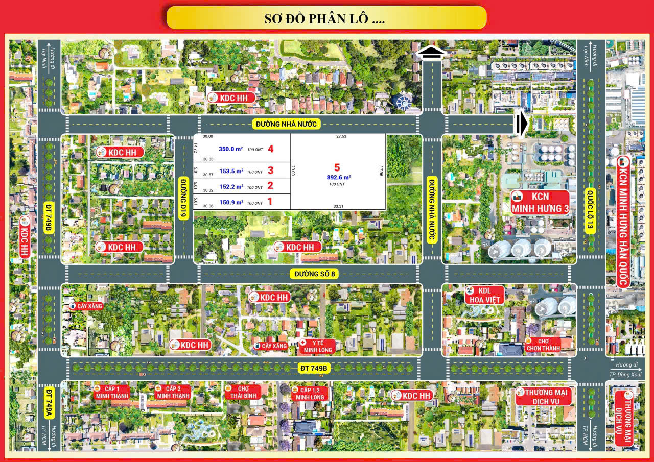 Gần KCN Minh Hưng 3 Đường đất đỏ, rộng 5m