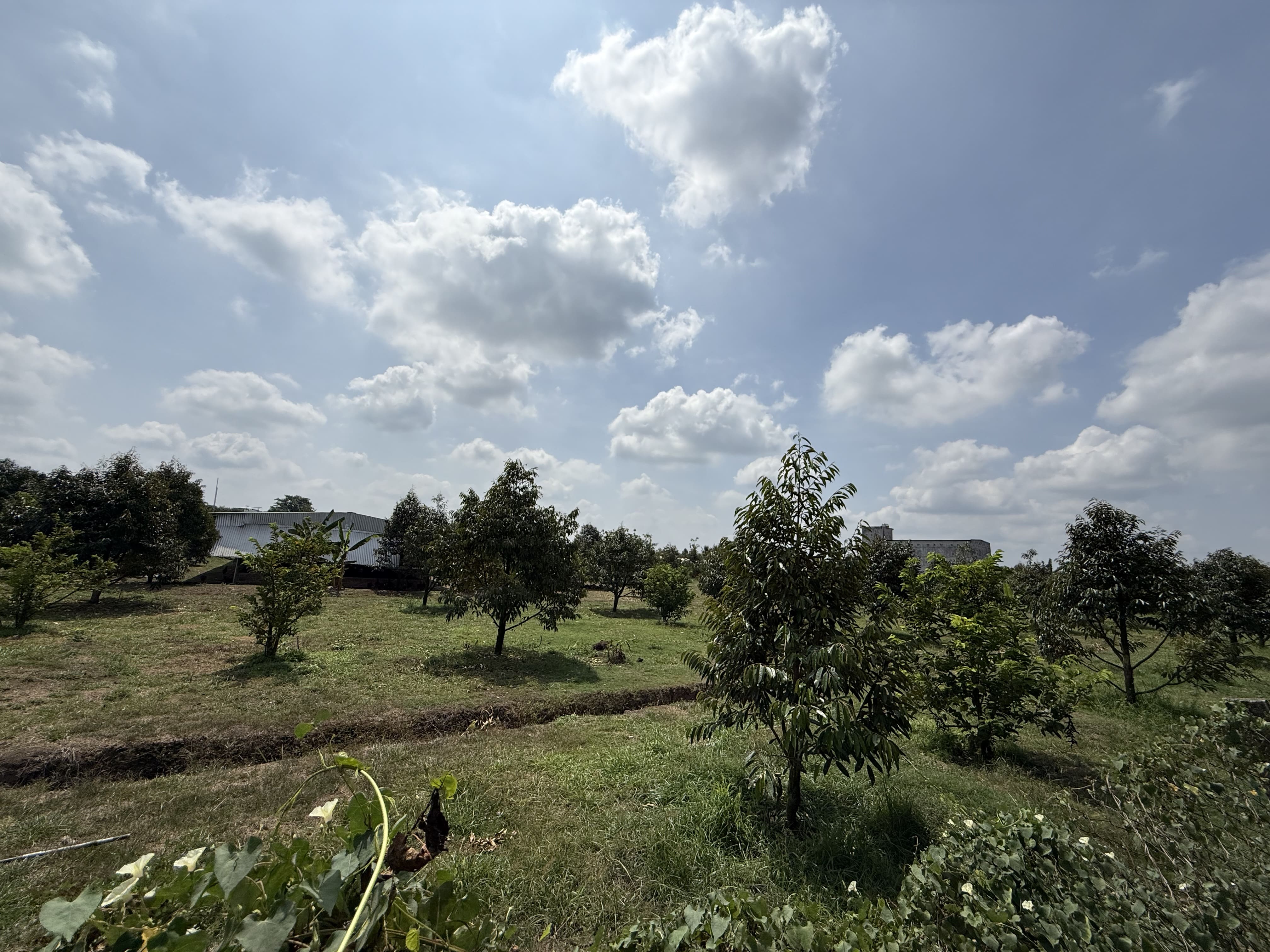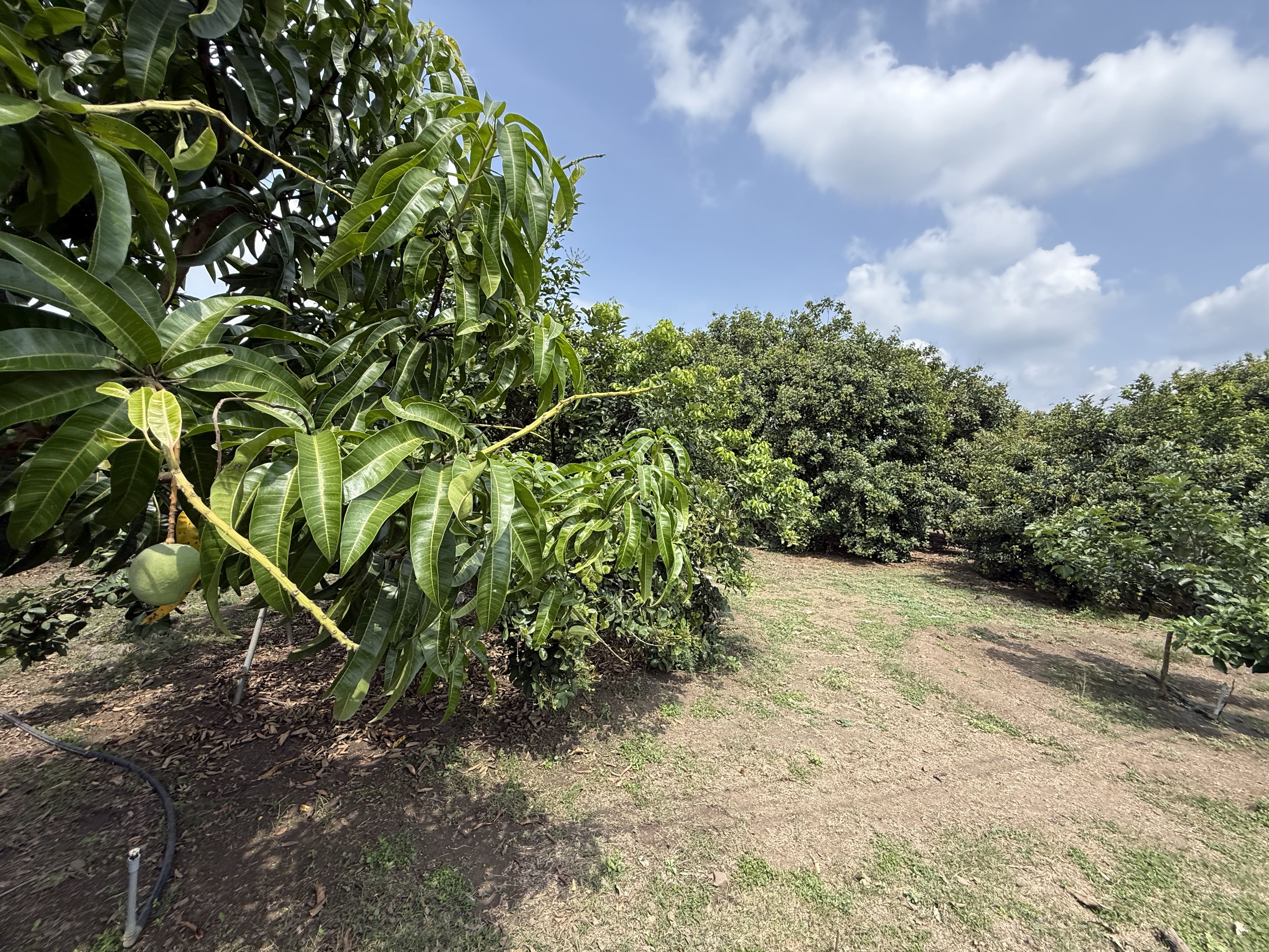Trên đất có sẵn vài cây ăn trái đã và đang tới mùa vụ