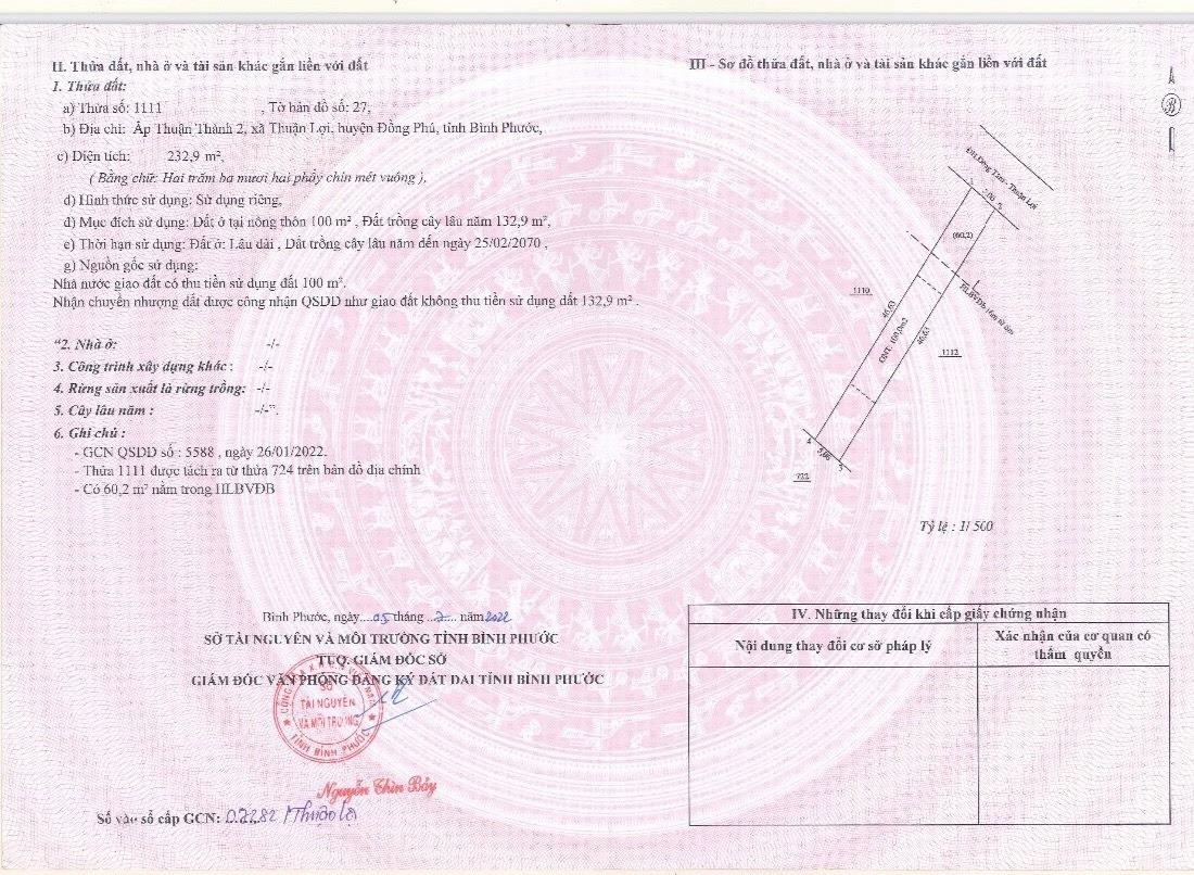 Sở hữu miếng đất 250 m2 tại Xã Thuận Lợi - Đồng Phú - Bình Phước, giá 430 tr