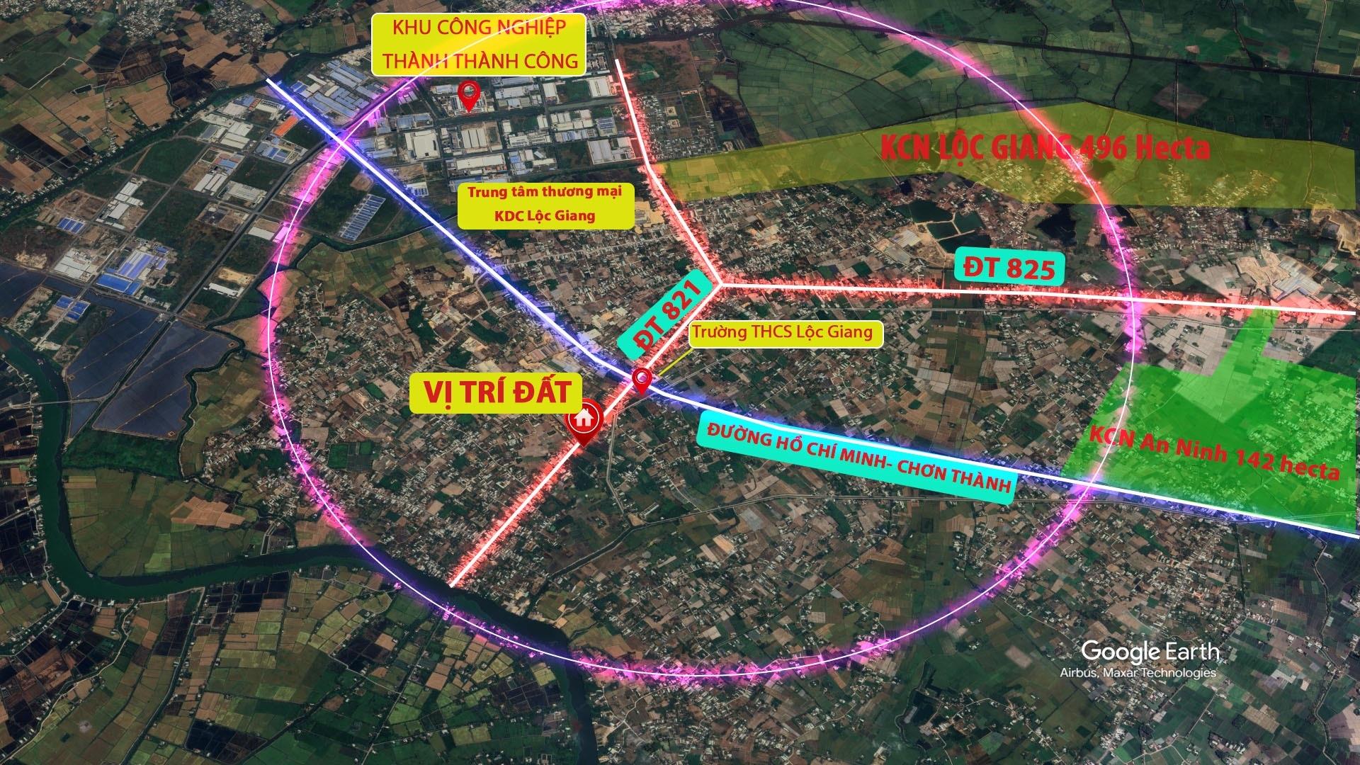 - Vị trí đắc địa, nằm ngay giao lộ ĐT 821 với Đường Sài Gòn - Chơn Thành, bán kính 02 kilomet là 3 khu công nghiệp: khu công nghiệp Thành Thành Công, khu công nghiệp Lộc Giang, cụm công nghiệp An Ninh. Cách TP. Sài Gòn 25 kilomet.