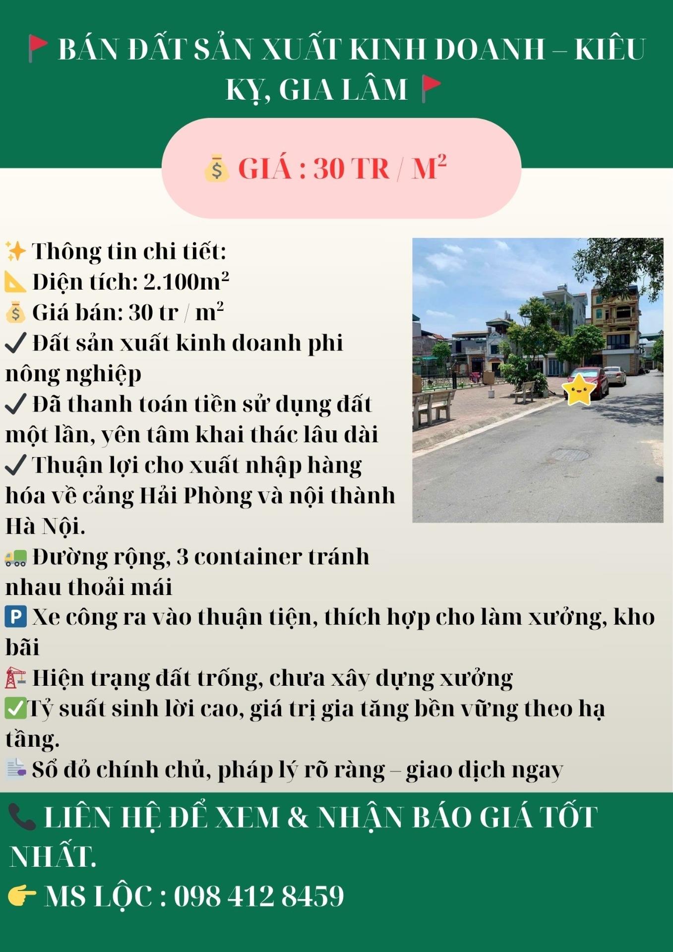 🚩 BÁN ĐẤT SX KD – KIÊU KỴ, GIA LÂM 🚩