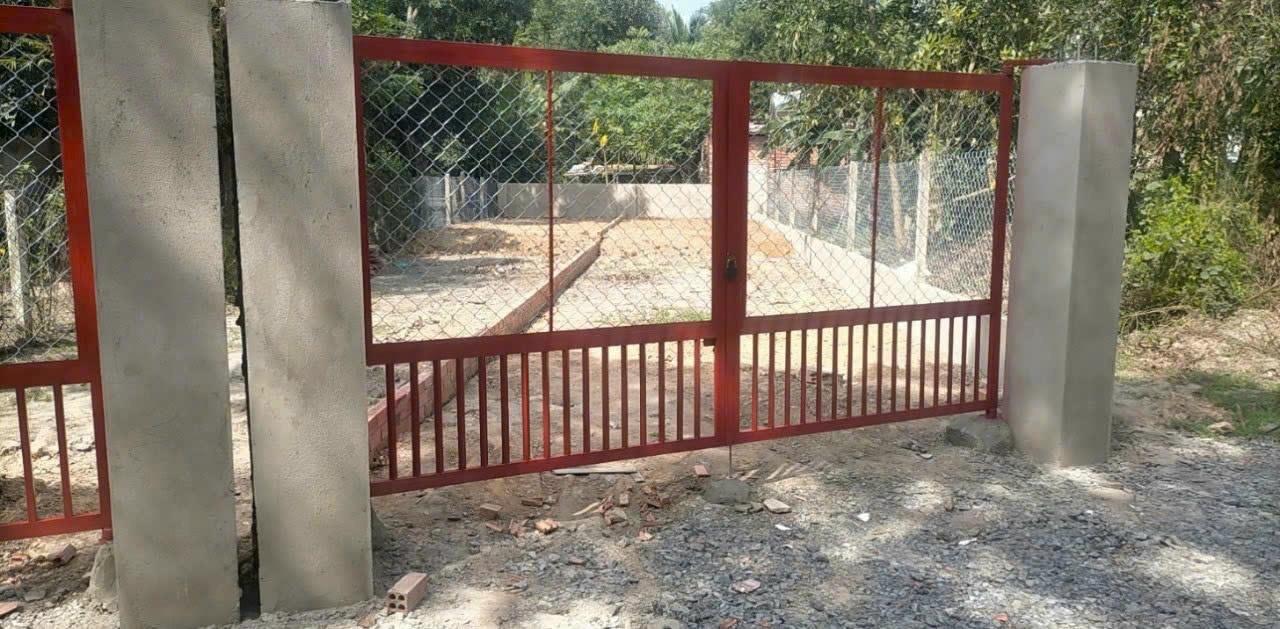 Đất trống, đã có cổng và hàng rào bao quanh, phù hợp để xây nhà ở hoặc làm kho xưởng.